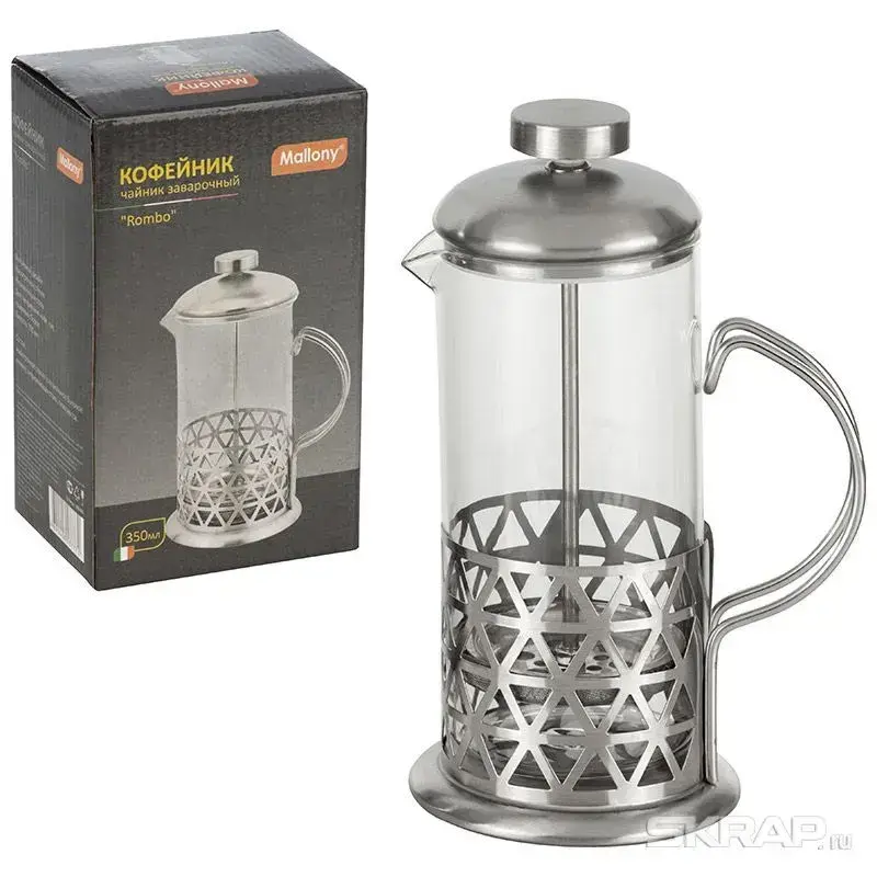 Прозрачный стеклянный корпус и металлические детали создают эстетику, которая украсит любой стол. Объем 350 мл оптимален для приготовления ароматного кофе или чая на 1-2 персоны.