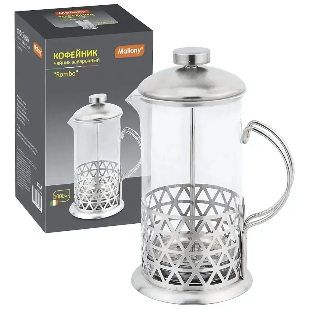 Стеклянный заварочный чайник серии Rombo сочетает элегантность дизайна и функциональность. Прозрачные стенки позволяют наблюдать за процессом заваривания, а герметичная металлическая крышка сохраняет тепло и аромат вашего любимого чая или кофе.