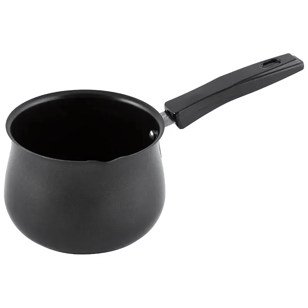 Объём 750 мл оптимален для приготовления 3-4 порций. Толстые стенки 1.8 мм обеспечивают длительное сохранение температуры. Диаметр основания 9 см совместим со всеми типами плит. Чёрный матовый корпус устойчив к царапинам.