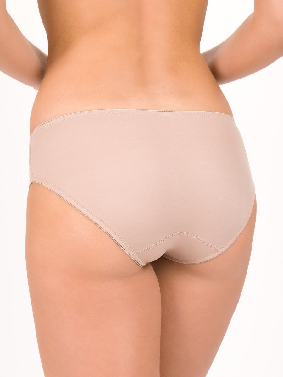 Средняя посадка обеспечивает удобство в течение всего дня, не сковывает движения и аккуратно фиксируется на бедрах. Задняя часть выполнена из шелковистой микрофибры, которая приятно прилегает к коже и остается незаметной под одеждой. Контуры обработаны плоским кантом, что помогает избежать лишнего давления и делает модель комфортной даже при длительном ношении.