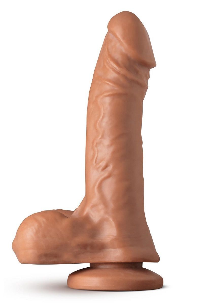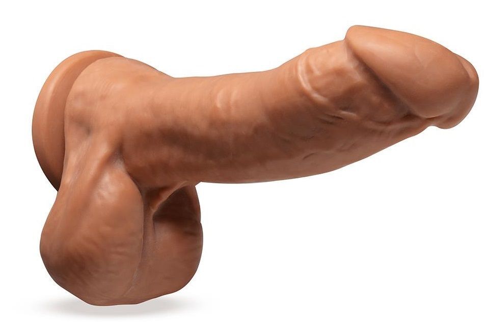 Реалистичная текстура с проработкой венозного рисунка и кожных складок усиливает сенсорное восприятие. Плоское основание с присоской обеспечивает стабильное положение на горизонтальных поверхностях — от кафеля до стекла. Нейтральный кофейный оттенок подходит для разных сценариев использования.