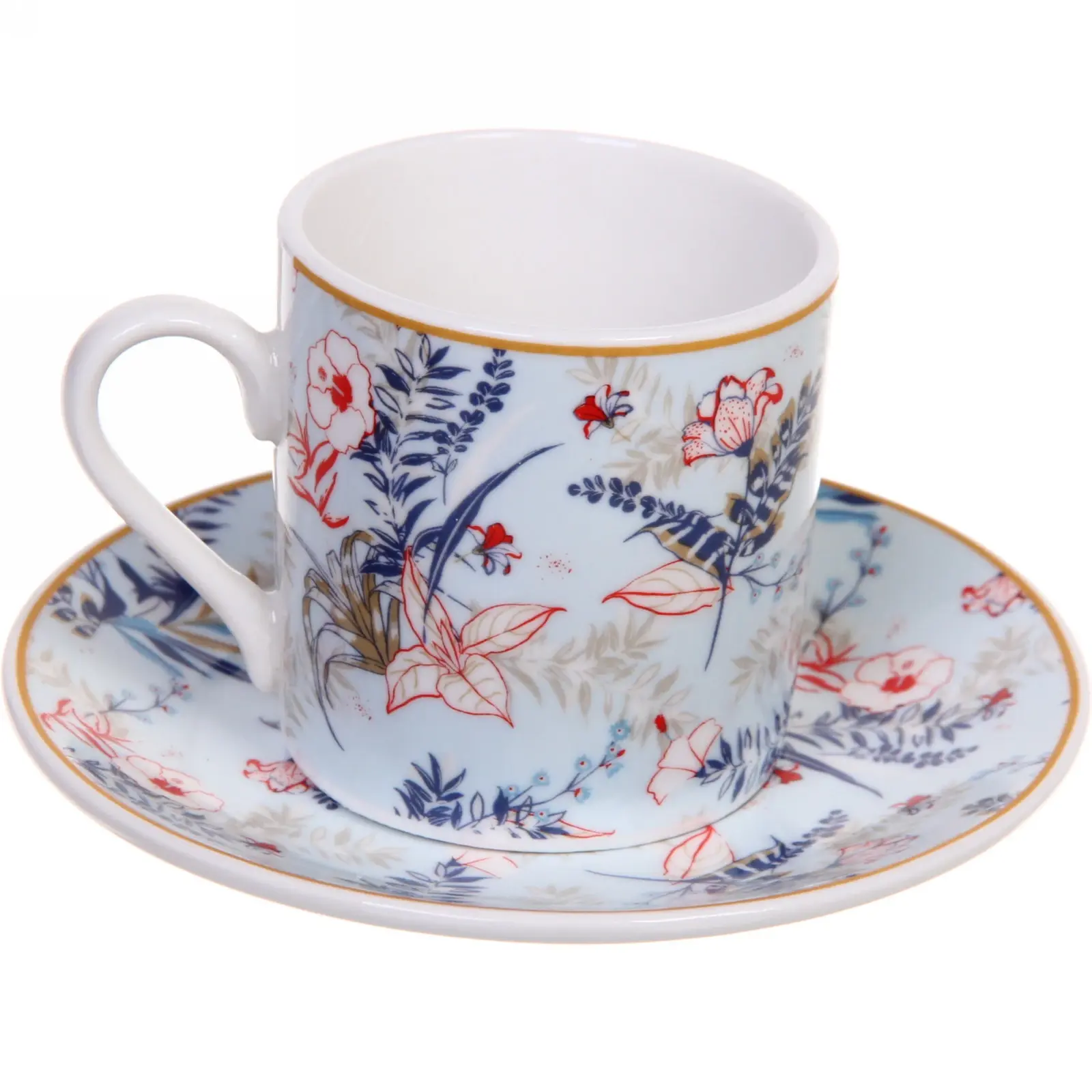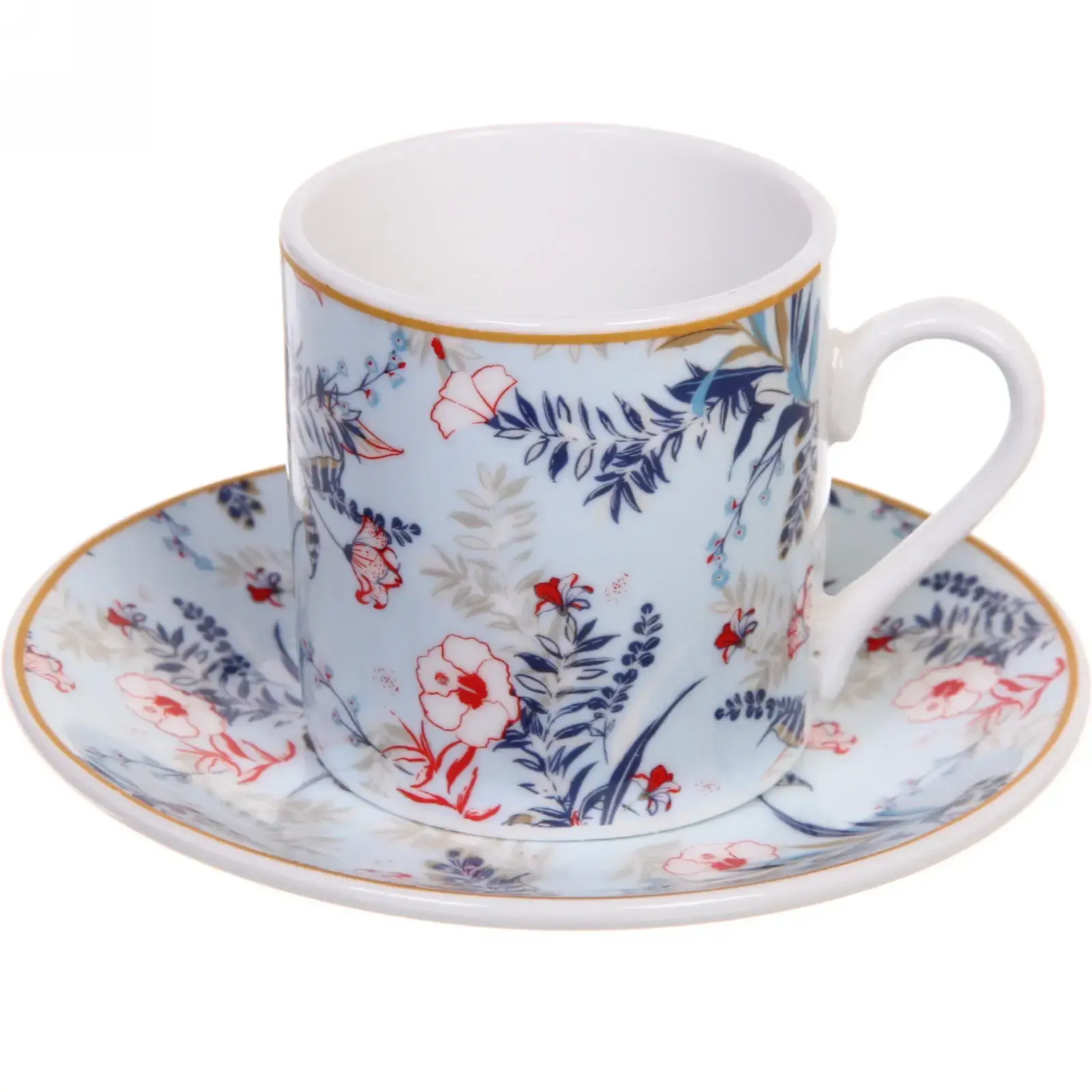 Кофейный набор «Paradise», 12 предметов: 6 кружек 90мл + 6 блюдец, голубой с цветочным рисунком, золотая окантовка