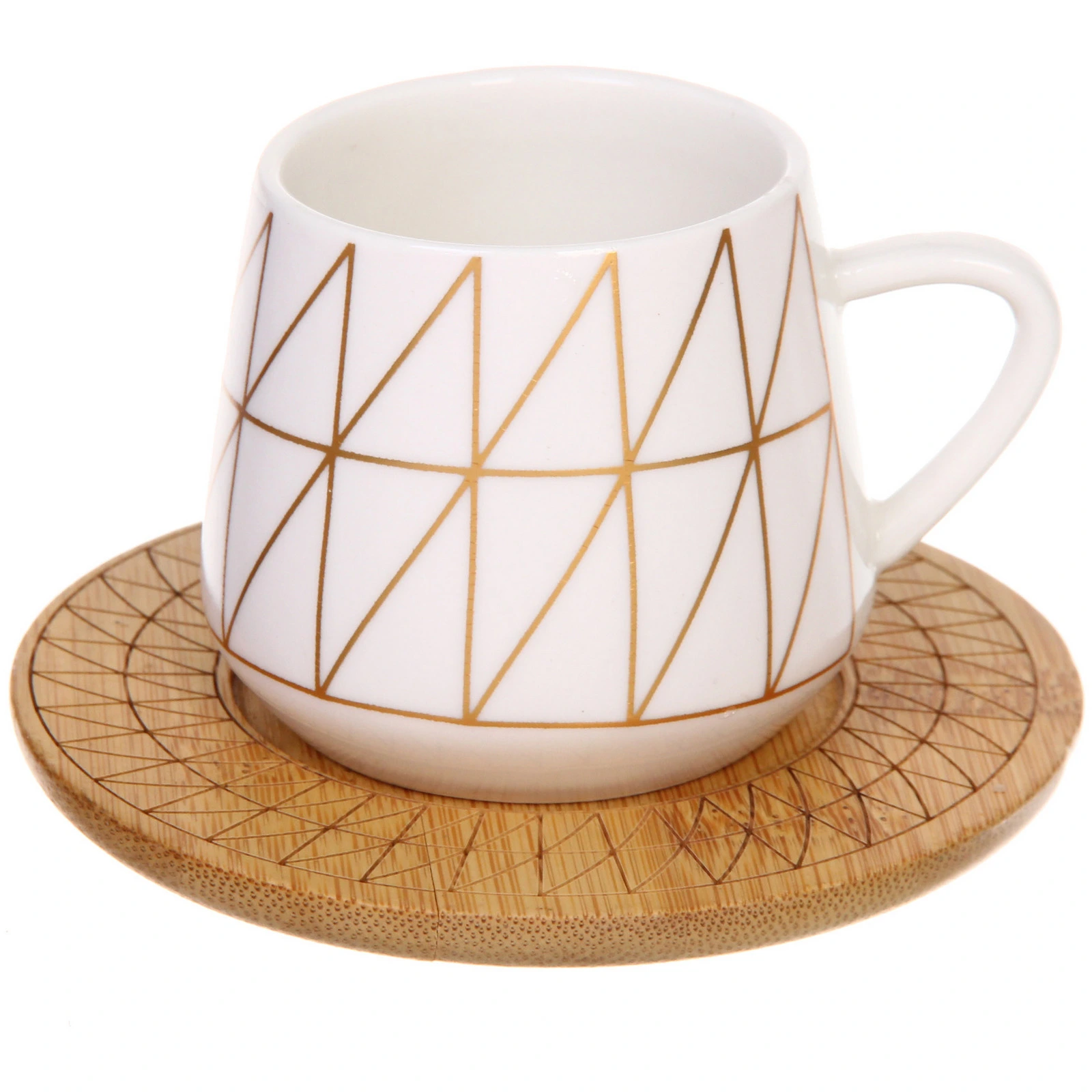 Выбирая этот набор, вы получаете не только красивую посуду, но и долговечный продукт, который прослужит вам долго. Керамика, из которой изготовлены кружки, устойчива к высоким температурам и легко очищается. Дизайн с золотистыми линиями и треугольниками добавляет изысканности и стиля, что делает набор отличным вариантом для подарка.
