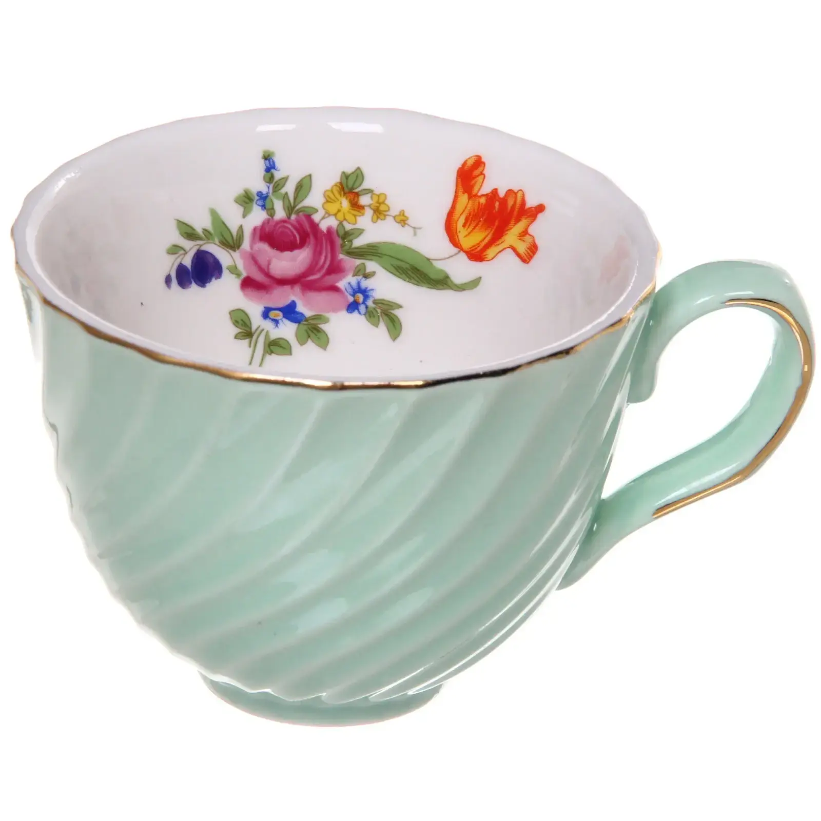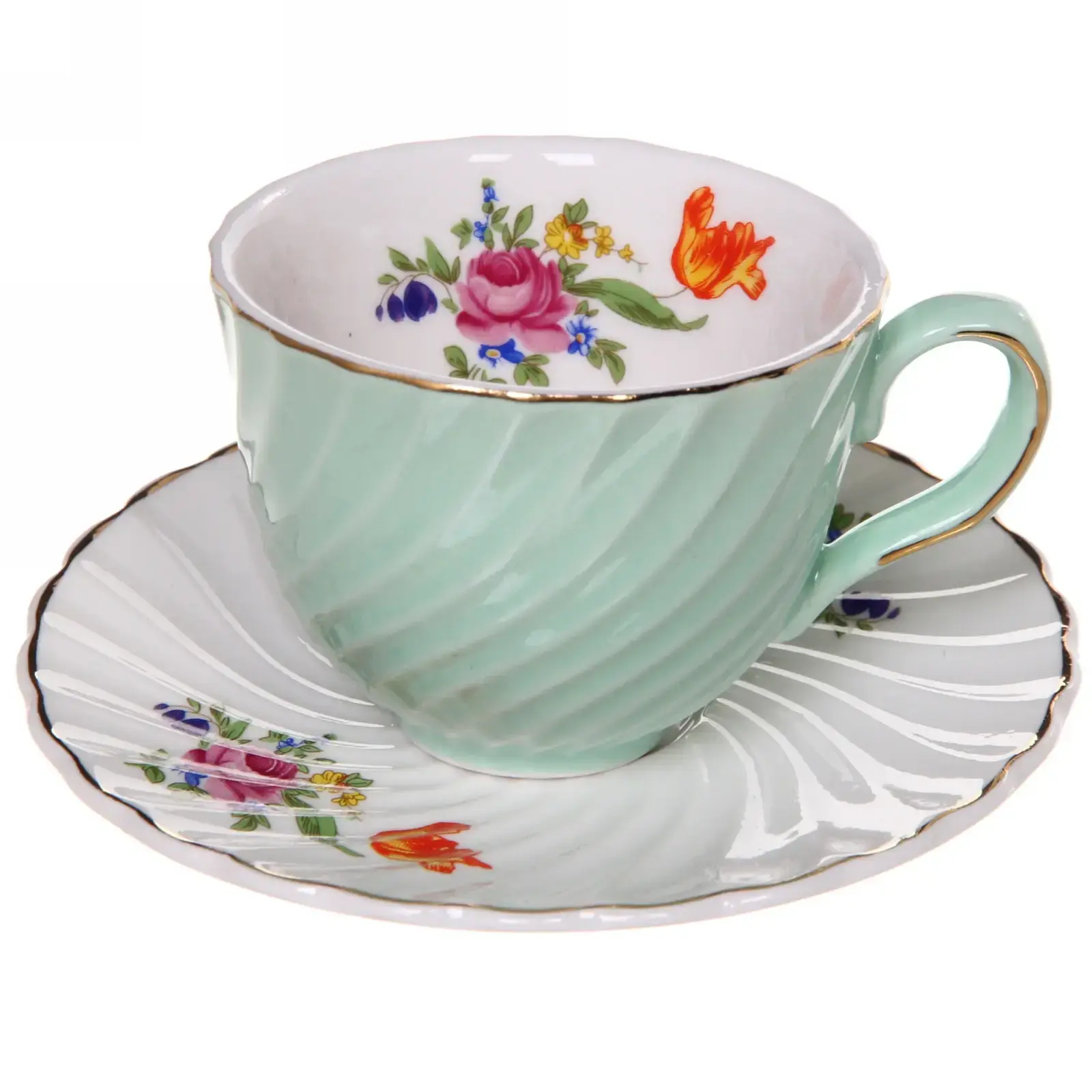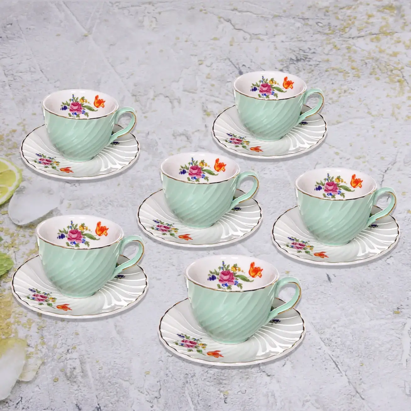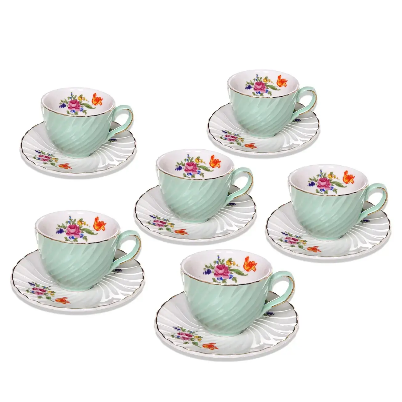 Этот изысканный кофейный набор из 12 предметов станет настоящим украшением вашего дома. Он создан для тех, кто ценит комфорт и стиль в каждой детали. Набор включает 6 кружек объемом 90 мл и 6 блюдец, выполненных в нежном мятном цвете с цветочными узорами, что придаст вашему чаепитию особую атмосферу уюта и радости.