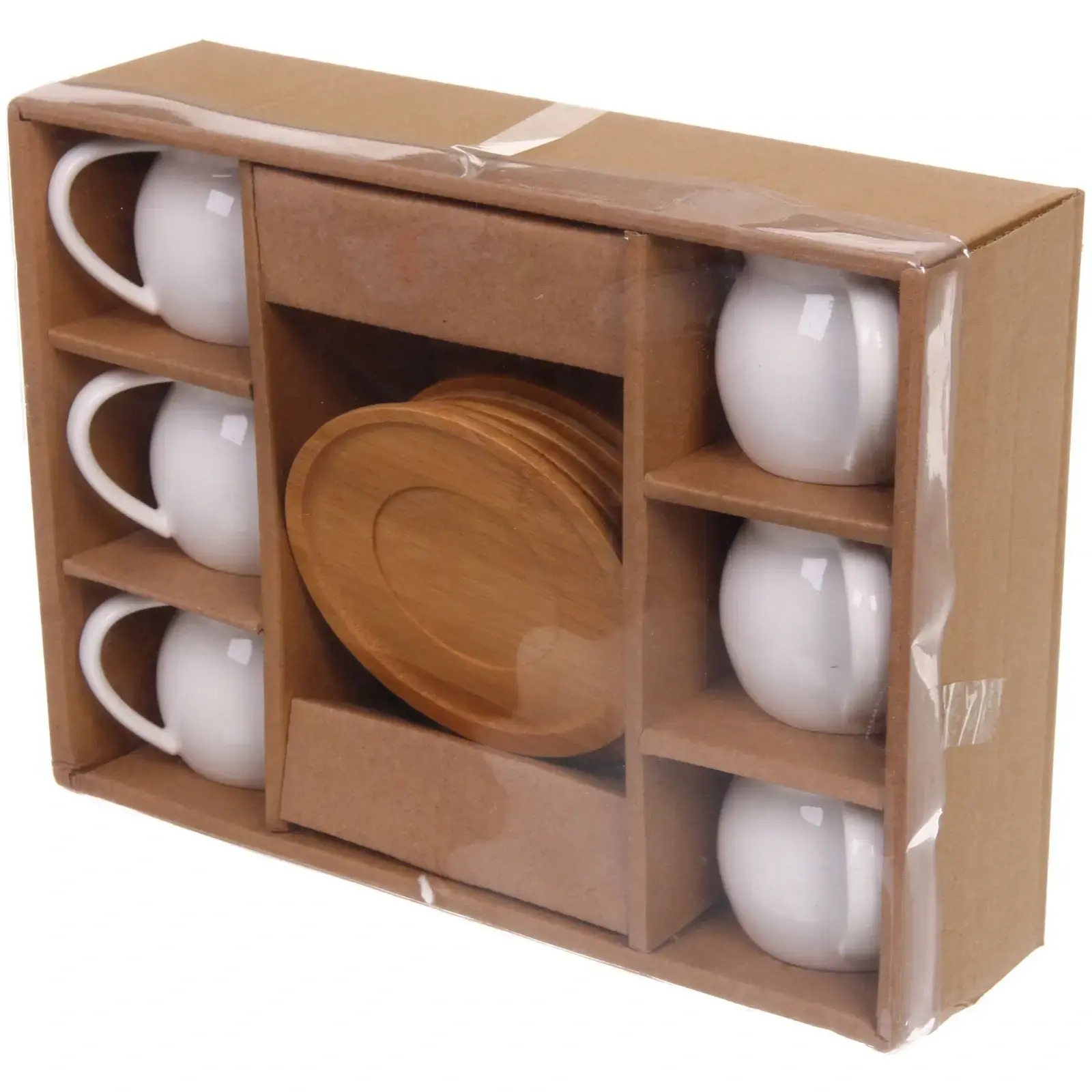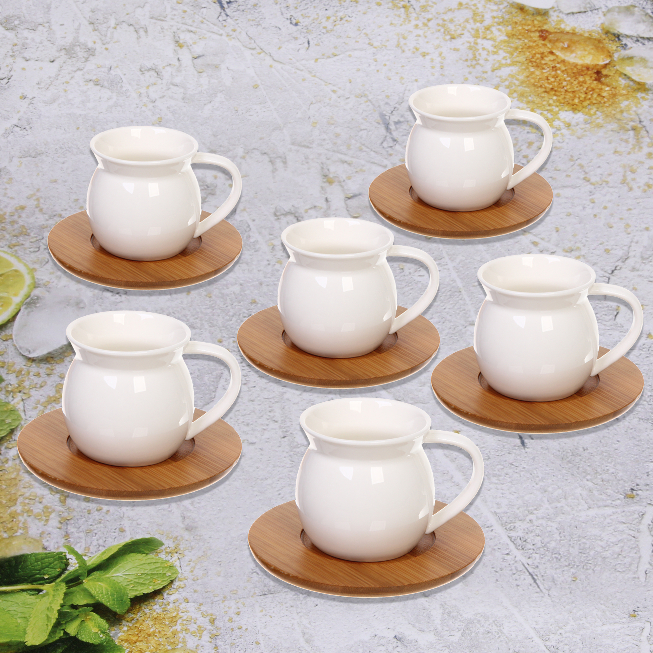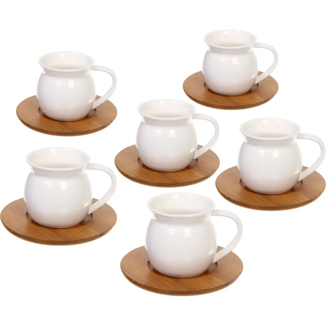 Кофейный набор «White magic», 12 предметов: 6 кружек 100 мл + 6 блюдец, керамика, деревянные подставки