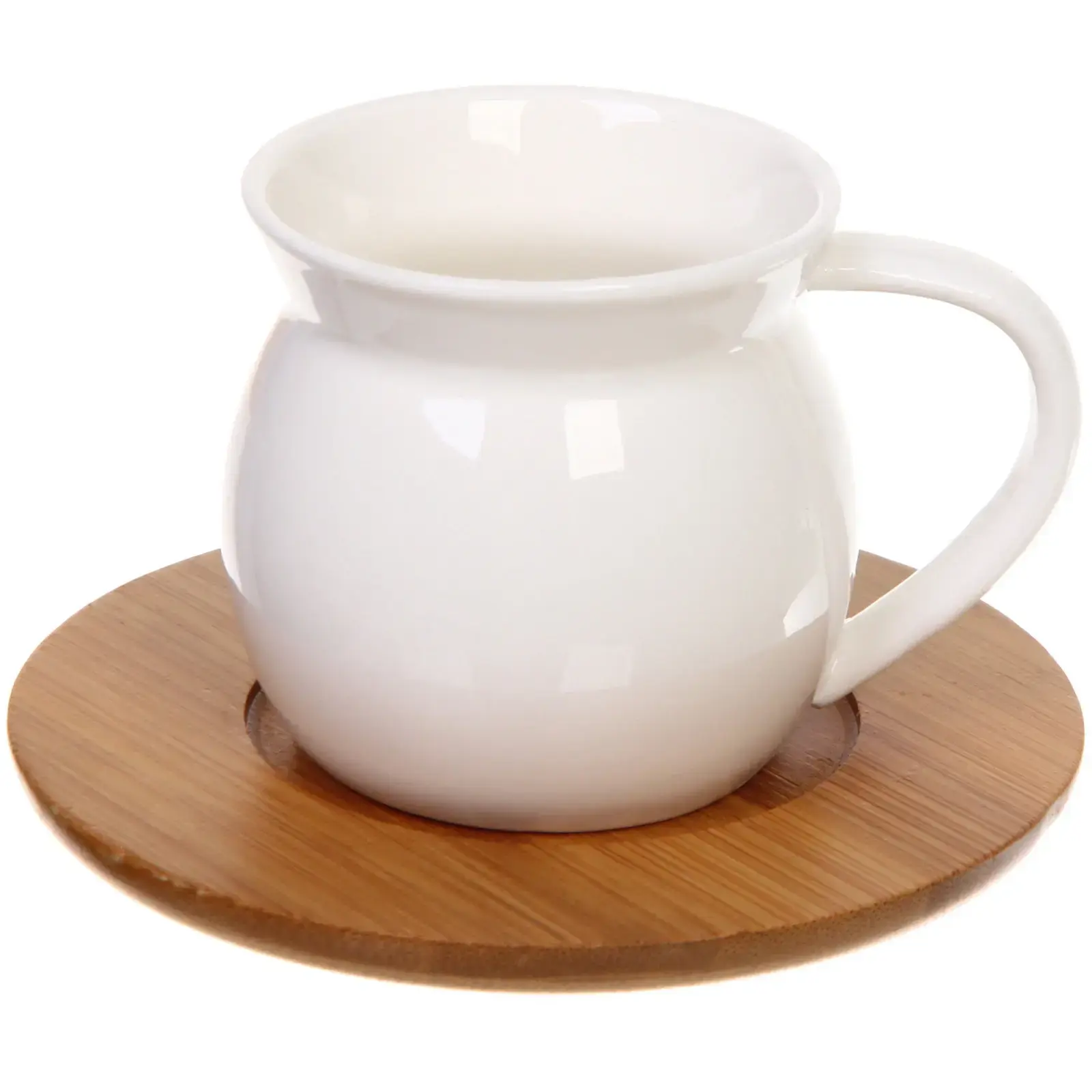 Керамические кружки с гладким покрытием исключают появление сколов при аккуратном использовании. Деревянные подставки обработаны защитным составом, что предотвращает деформацию от влаги. Комплект поставляется в подарочной упаковке, готовой к вручению.