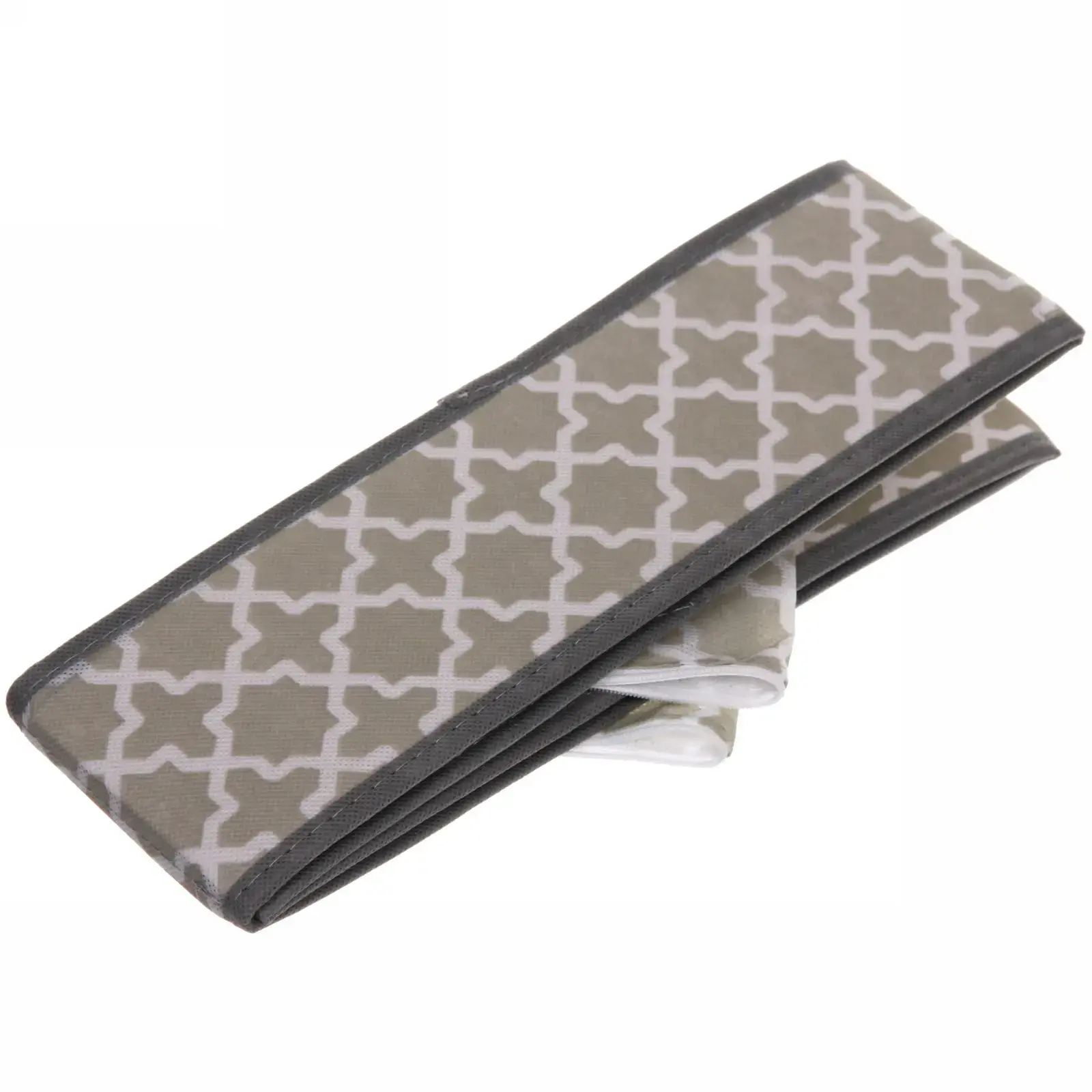 Расположите вертикально в шкафу для хранения галстуков и ремней, разместите на полке для организации косметики или используйте как мобильный органайзер при переездах. Плотная структура ткани предотвращает деформацию, а эластичные бортики позволяют заполнять отделения без риска повреждения швов.