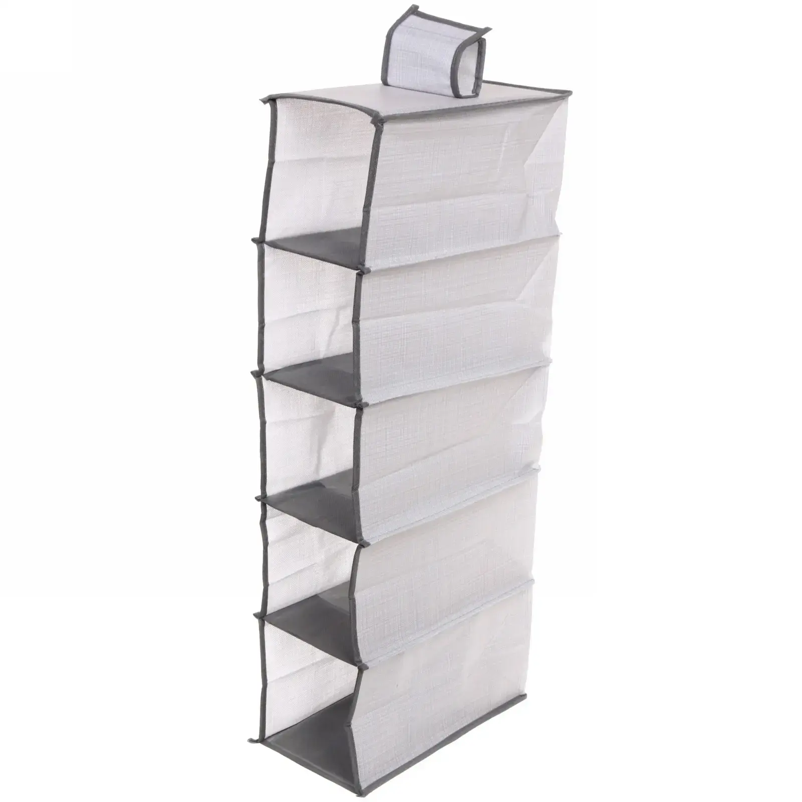 Этот подвесной органайзер выполнен из прочного текстиля и обладает пятью открытыми отделениями, что позволяет максимально эффективно использовать пространство в шкафах, гардеробных или комнатах.