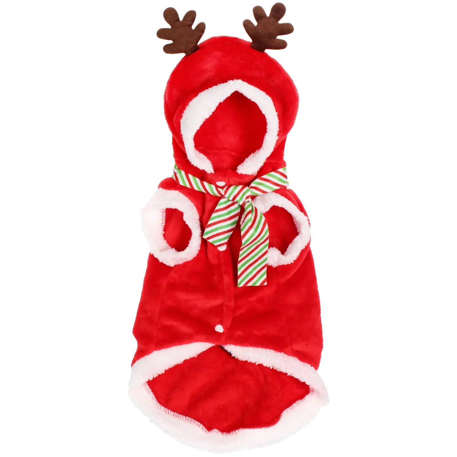 Пушистая кофта с капюшоном в виде оленя превратит вашу собаку в главного новогоднего героя. Мягкий полиэстер обеспечивает комфорт и тепло во время зимних прогулок.