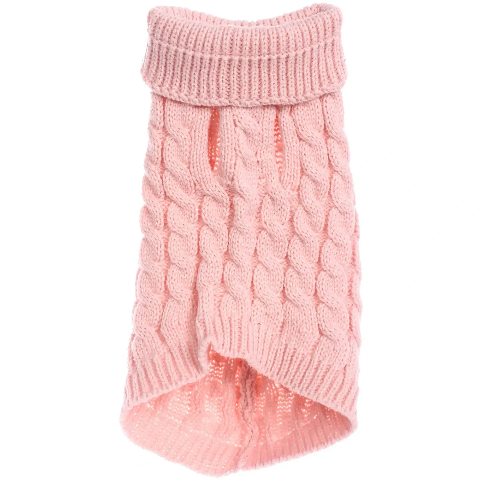 Размер S идеально подходит для мелких пород собак и кошек с обхватом груди до 38см. Натуральный розовый цвет сочетается с любым окрасом шерсти, а объемный узор 'косички' создает дополнительное утепление.