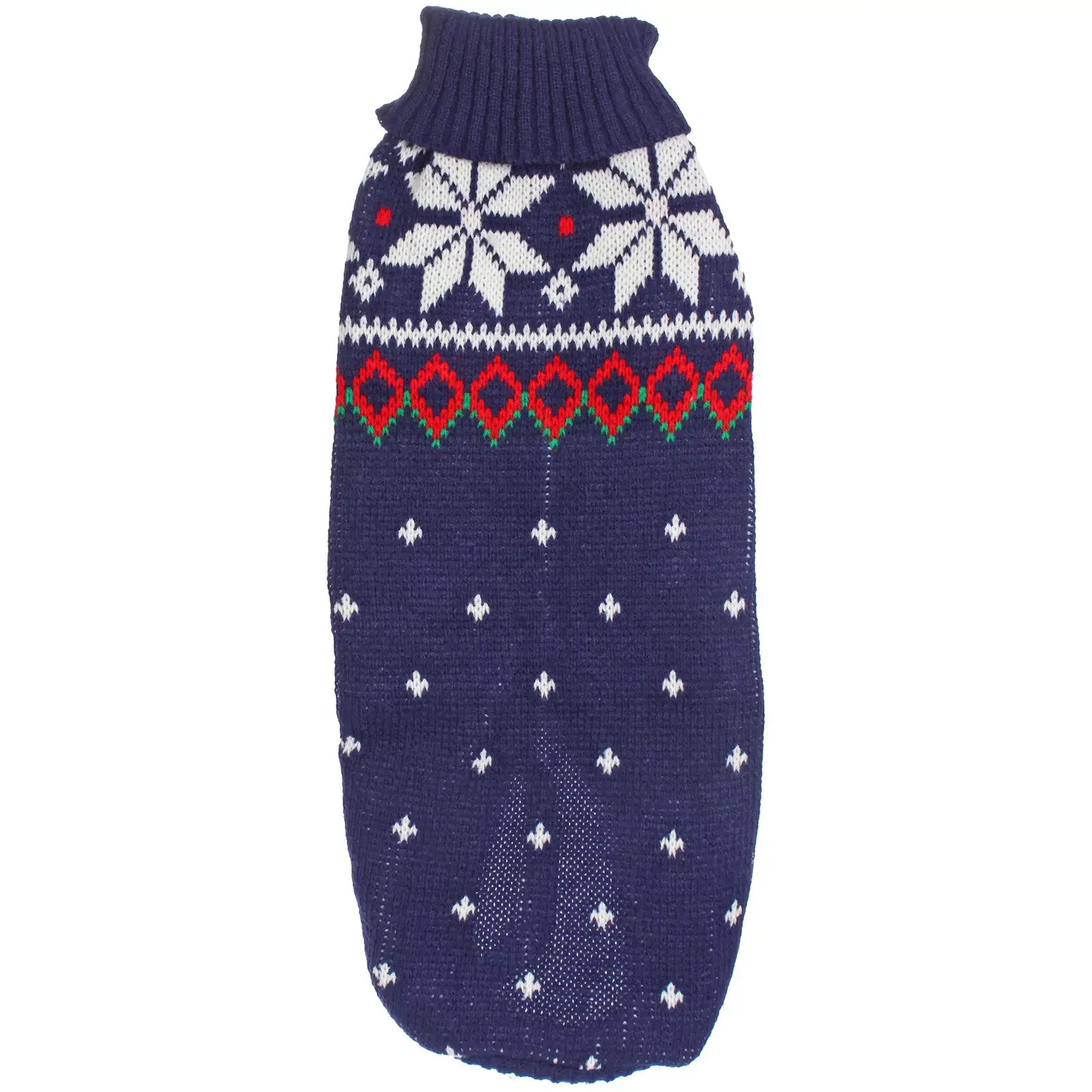 Размер XL подходит для обхвата шеи 38 см и обхвата груди 38 см, а длина от холки до хвоста составляет 36 см. Свитер выполнен в темно-синем цвете с белыми и красными узорами, что придаёт ему яркий и привлекательный вид. Не упустите возможность порадовать своего питомца стильной и теплой одеждой!