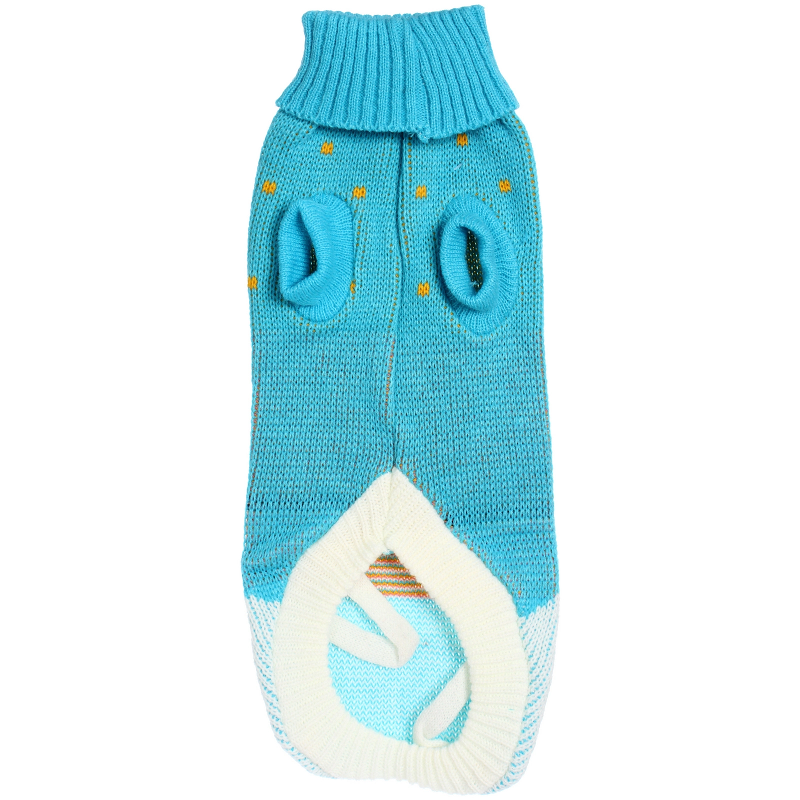 Свитер имеет удобный круглый вырез для головы и два отверстия для передних лап, что обеспечивает легкость в одевании и комфорт при носке. Он подходит для домашних животных, которые любят активные прогулки на свежем воздухе, а также для уютных вечеров дома. Размер M идеально подходит для собак с обхватом шеи 38 см и обхватом груди 38 см, а длина от холки до хвоста составляет 36 см.