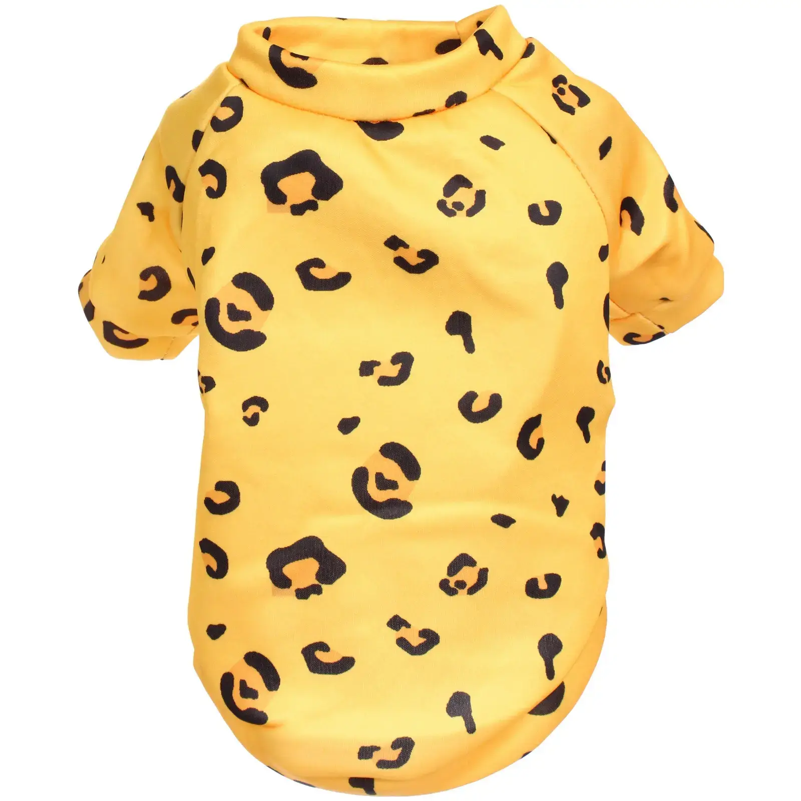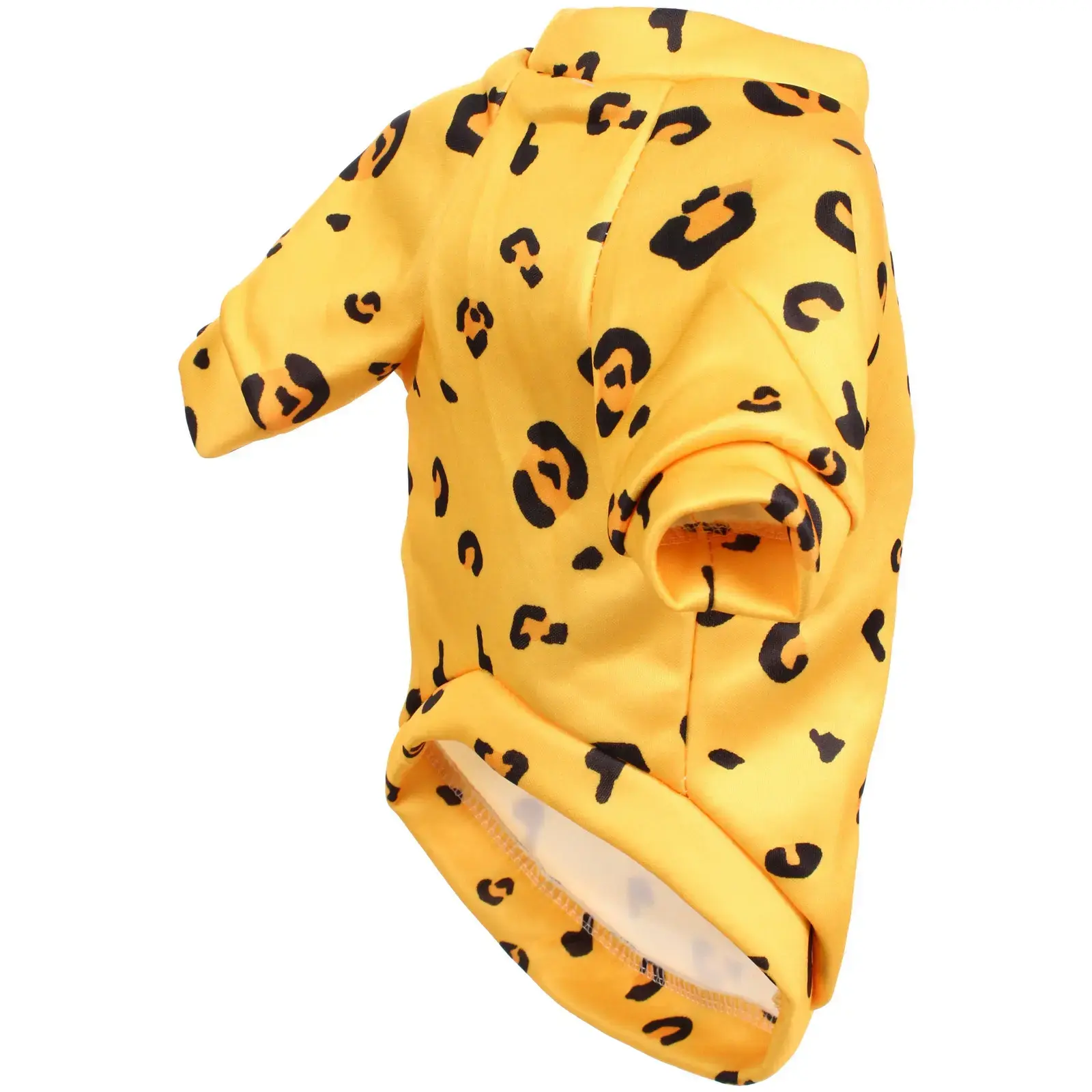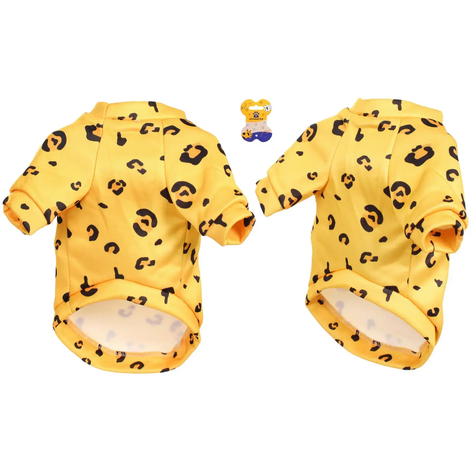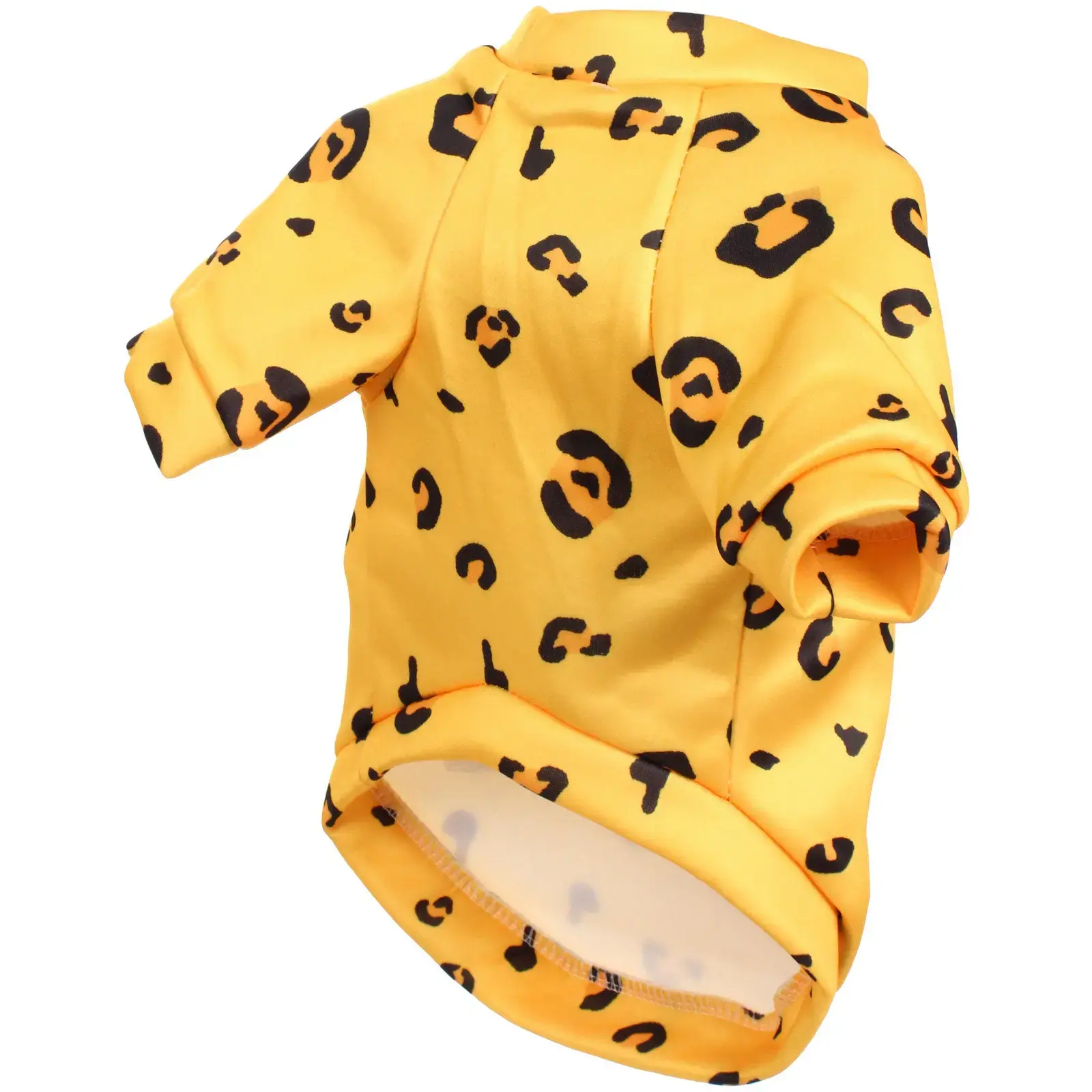 Толстовка имеет яркий леопардовый принт на желтом фоне, что делает ее не только практичной, но и модной. Округлый вырез горловины и короткие рукава обеспечивают легкость в надевании и снятии, а свободный крой позволяет вашему питомцу свободно играть и бегать. Эта модель подходит для прогулок на свежем воздухе, а также для домашнего использования, создавая уютную атмосферу.
