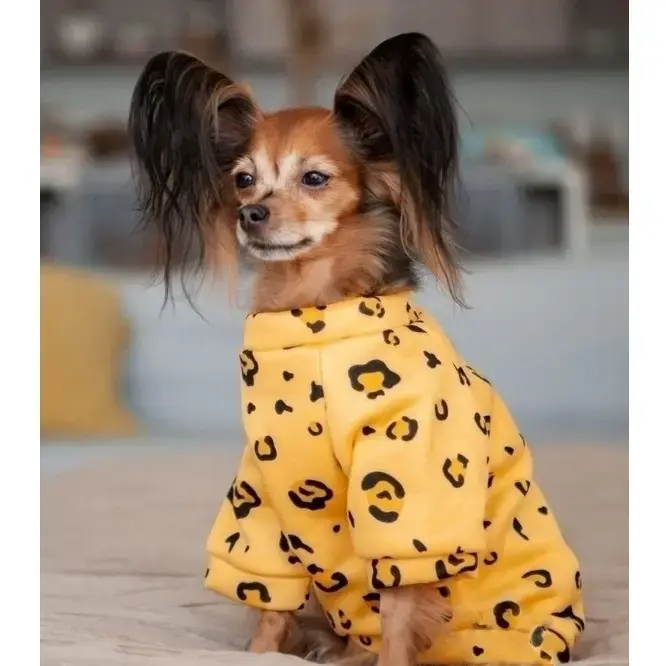 Преимущества кофты «BRO Style» заключаются не только в её привлекательном дизайне, но и в практичности. Яркий желтый цвет с черным леопардовым принтом привлечет внимание и сделает вашего питомца настоящей звездой на прогулке. Кроме того, синтетический материал легко стирается и быстро сохнет, что значительно упрощает уход за изделием.
