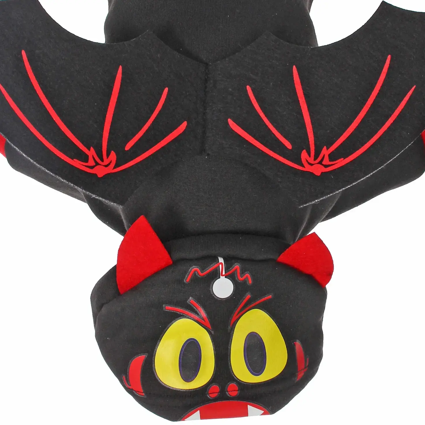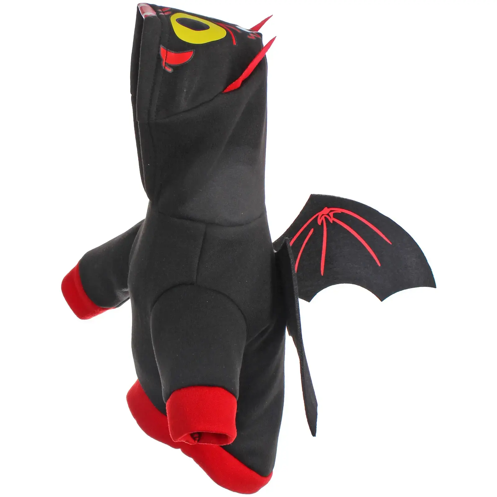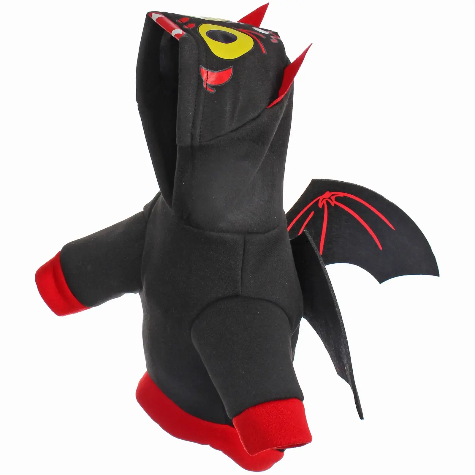 Толстовка предназначена для собак мелких пород, таких как чихуахуа и йоркширский терьер. Она легко надевается и снимается благодаря удобному дизайну с капюшоном. Капюшон оформлен в виде головы летучей мыши, что добавляет оригинальности и делает ваш питомец центром внимания на прогулке или на празднике.
