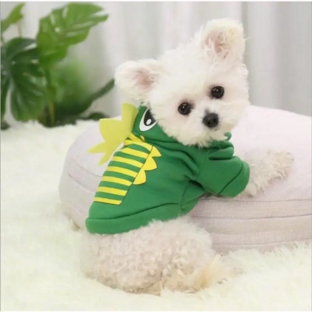 Подарите своему питомцу комфорт и стиль с кофтой для собак мелких пород с капюшоном «МОДНЫЙ БРО». Эта яркая кофта в виде динозавра не только украсит вашего любимца, но и обеспечит ему тепло в холодные дни. Изготовленная из качественного полиэстера, она легкая и удобная, что делает её идеальным выбором для активных прогулок и домашних игр.