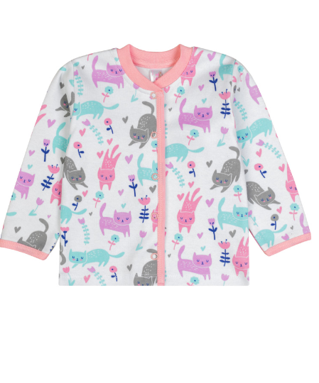 Подарите своему малышу комфорт и уют с этой очаровательной кофточкой от Takro. Изготовленная из 100% хлопка, она идеально подходит для нежной кожи новорожденных, обеспечивая мягкость и воздухопроницаемость. Милый дизайн с изображением кошечек и цветочков добавит образу неповторимости и очарования.