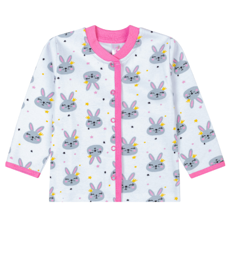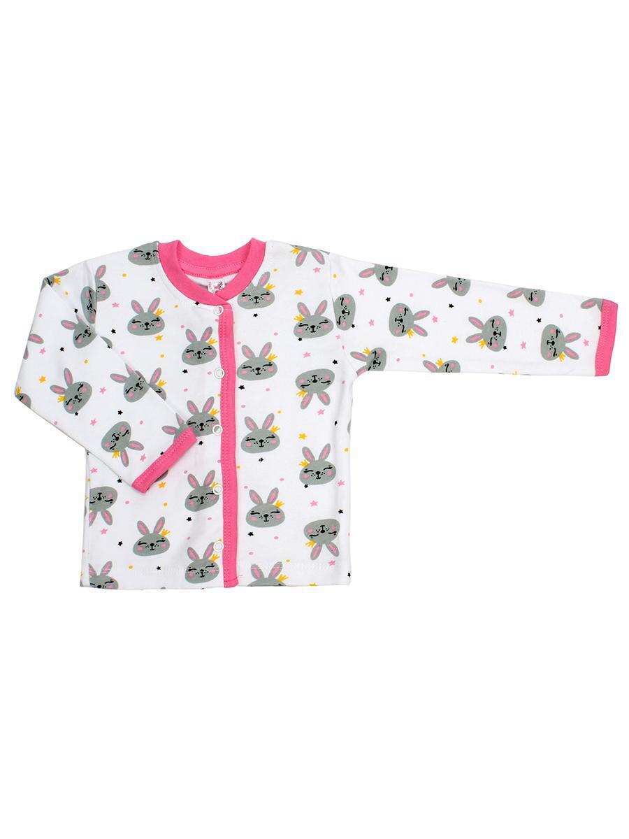 Кофточка для новорожденных, 100% хлопок, размер 74-80, белый с зайчиками и розовой окантовкой
