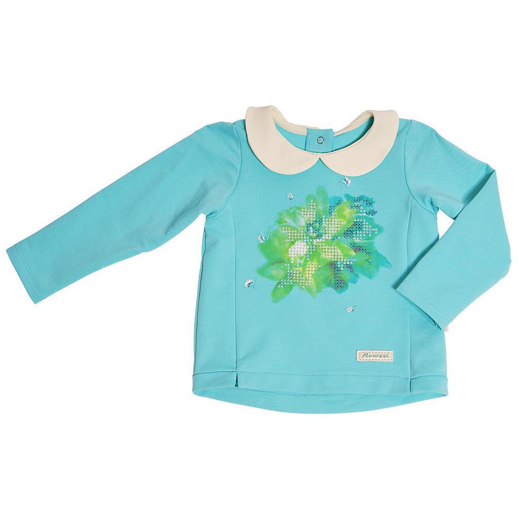 Кофта детская «Цветочная мелодия» с принтом, размер 52, небесно-голубая, воротник шампань