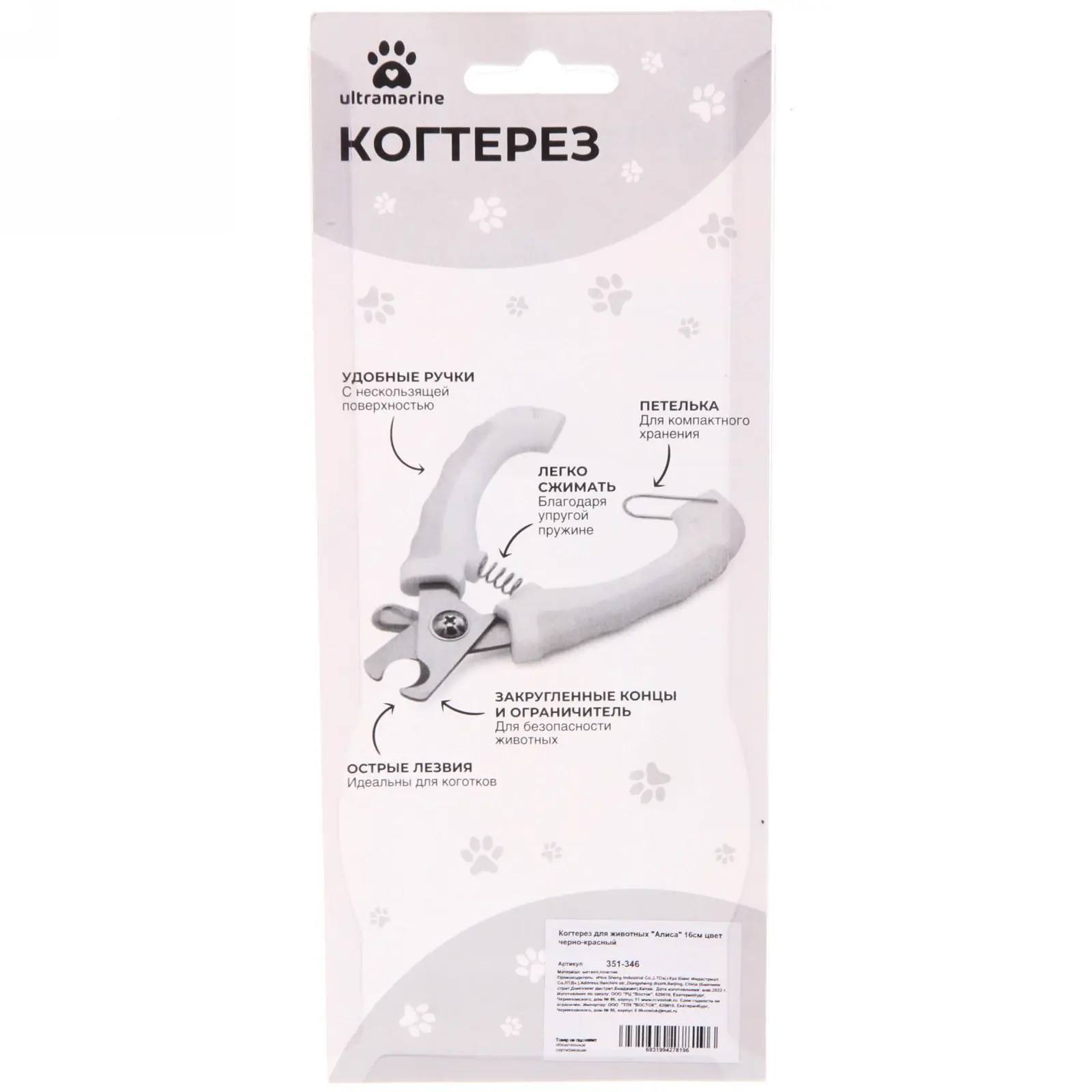 Размер когтереза составляет 16 см, что делает его идеальным для использования в домашних условиях. Черно-красный цвет и стильный дизайн добавляют эстетическую привлекательность. Упаковка оформлена в ярком мультяшном стиле, что делает когтерез отличным подарком для любителей животных.