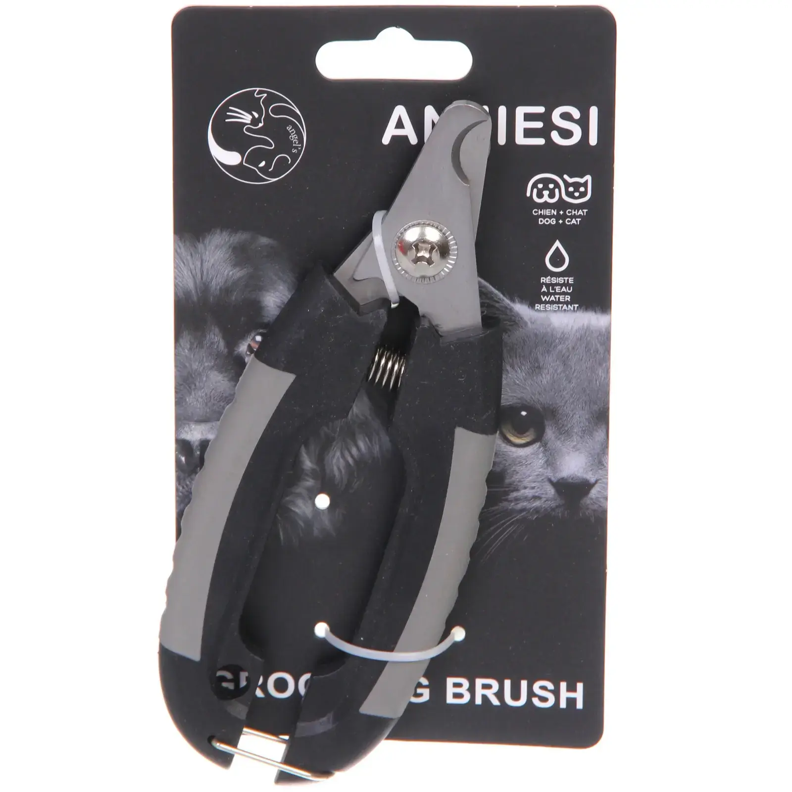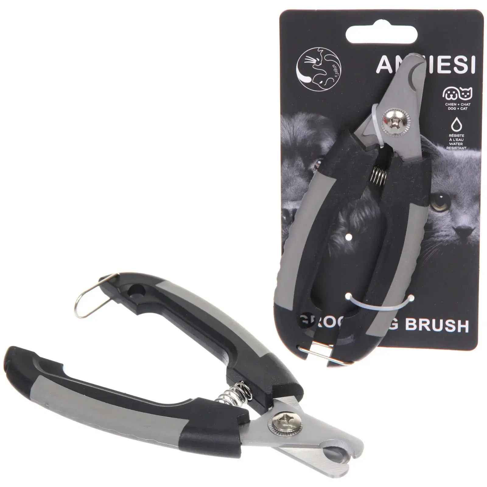 Когтерез для животных с фиксатором, прорезиненная ручка, серый/черный, 5.5×15.5 см