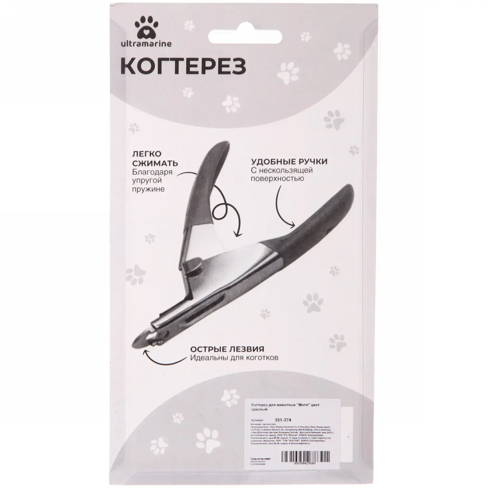 Когтерез имеет длину 12 см и выполнен из прочного металла и пластика. Яркий красный цвет делает его заметным и стильным аксессуаром для ухода за питомцем. Упаковка инструмента содержит важные символы безопасности, подтверждающие его надежность и функциональность. Не упустите возможность сделать уход за когтями вашего питомца простым и безопасным!