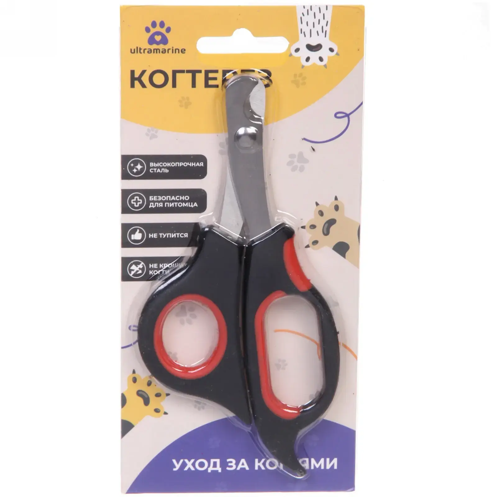 Когтерез выполнен из прочных материалов: металл и пластик, что обеспечивает его долговечность и надежность. Цветовая гамма черный с красными вставками делает его стильным аксессуаром для ухода за питомцем. Упаковка товара содержит важную информацию о безопасном использовании и уходе за когтями животных.