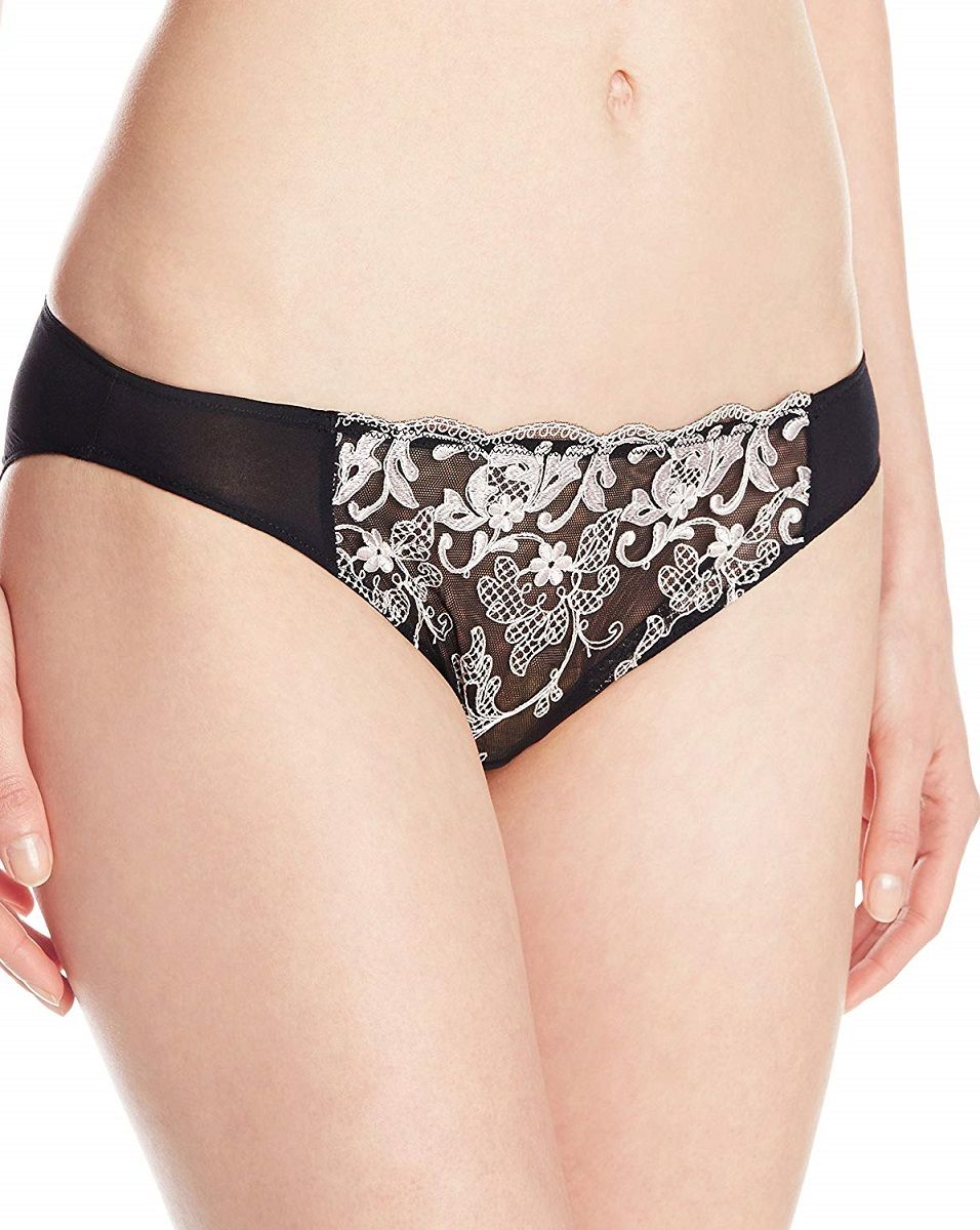Трусы-бикини Paramour с низкой посадкой подчеркивают линию бедер и создают аккуратный, соблазнительный силуэт. Модель сочетает прозрачный тюль с изысканной контрастной вышивкой, благодаря чему белье выглядит утонченно и привлекательно. Черный цвет добавляет образу глубины и универсальности — такие трусики легко впишутся в любой гардероб.