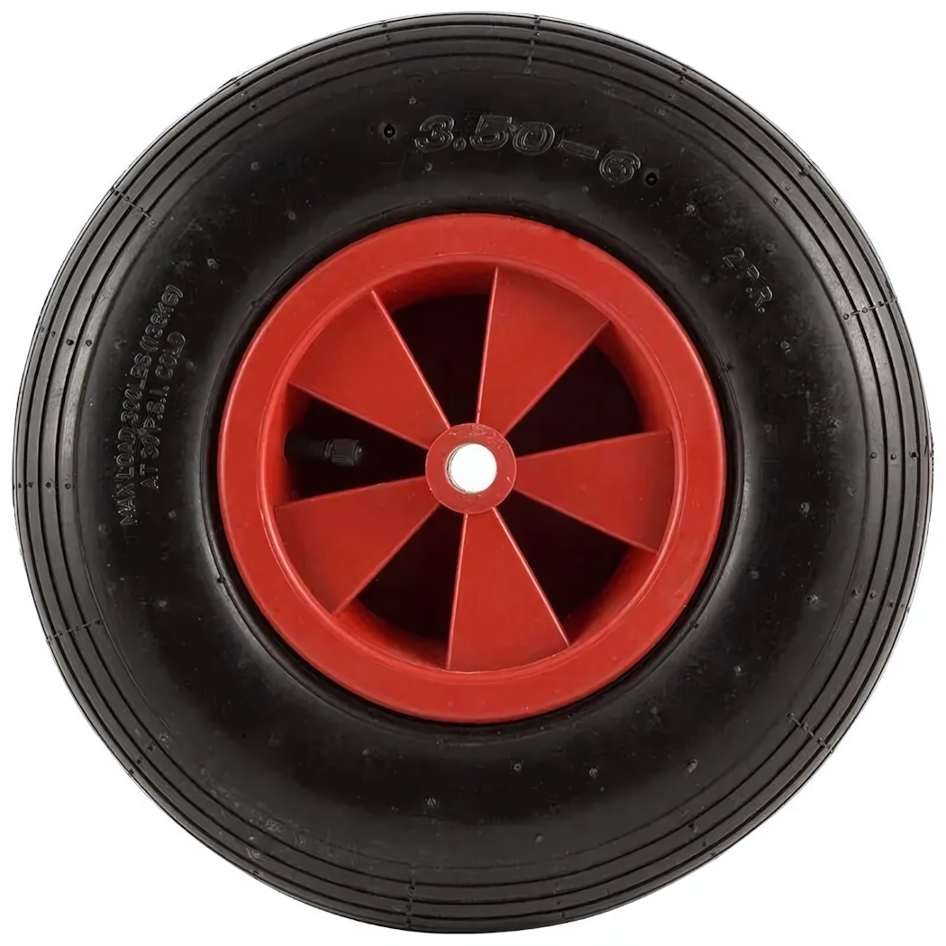 Колесо пневматическое 300 мм с красным диском, черная резина, 3.50-6 для садовой техники