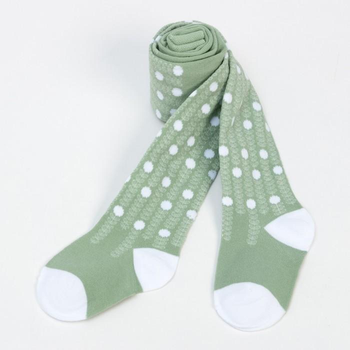 Колготки детские хлопковые р.92-98, оливковый с белыми точками