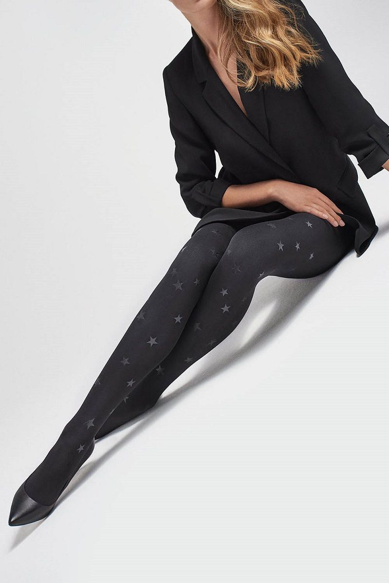 Черные колготки "Emmy" со звездами — это элегантное решение для тех, кто ценит комфорт и внимание к деталям. Их деликатный узор в виде звезд светло-серого оттенка добавляет образу игривости и индивидуальности, не нарушая общей строгости и элегантности. Идеально подходят для офиса, свидания или вечернего выхода, позволяя чувствовать себя уверенно и привлекательно в любой ситуации.