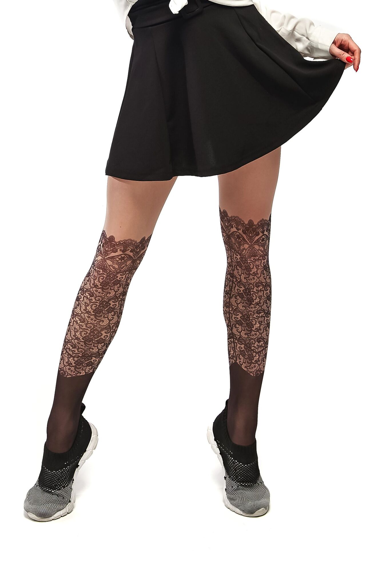Погрузитесь в мир стиля и комфорта с нашими колготками с имитацией кружевных сапожек. Эти колготки не только подчеркнут вашу индивидуальность, но и подарят ощущение уверенности и привлекательности. Благодаря уникальному дизайну, они создают эффект чулок, что делает их идеальным выбором для особых случаев или повседневной носки.