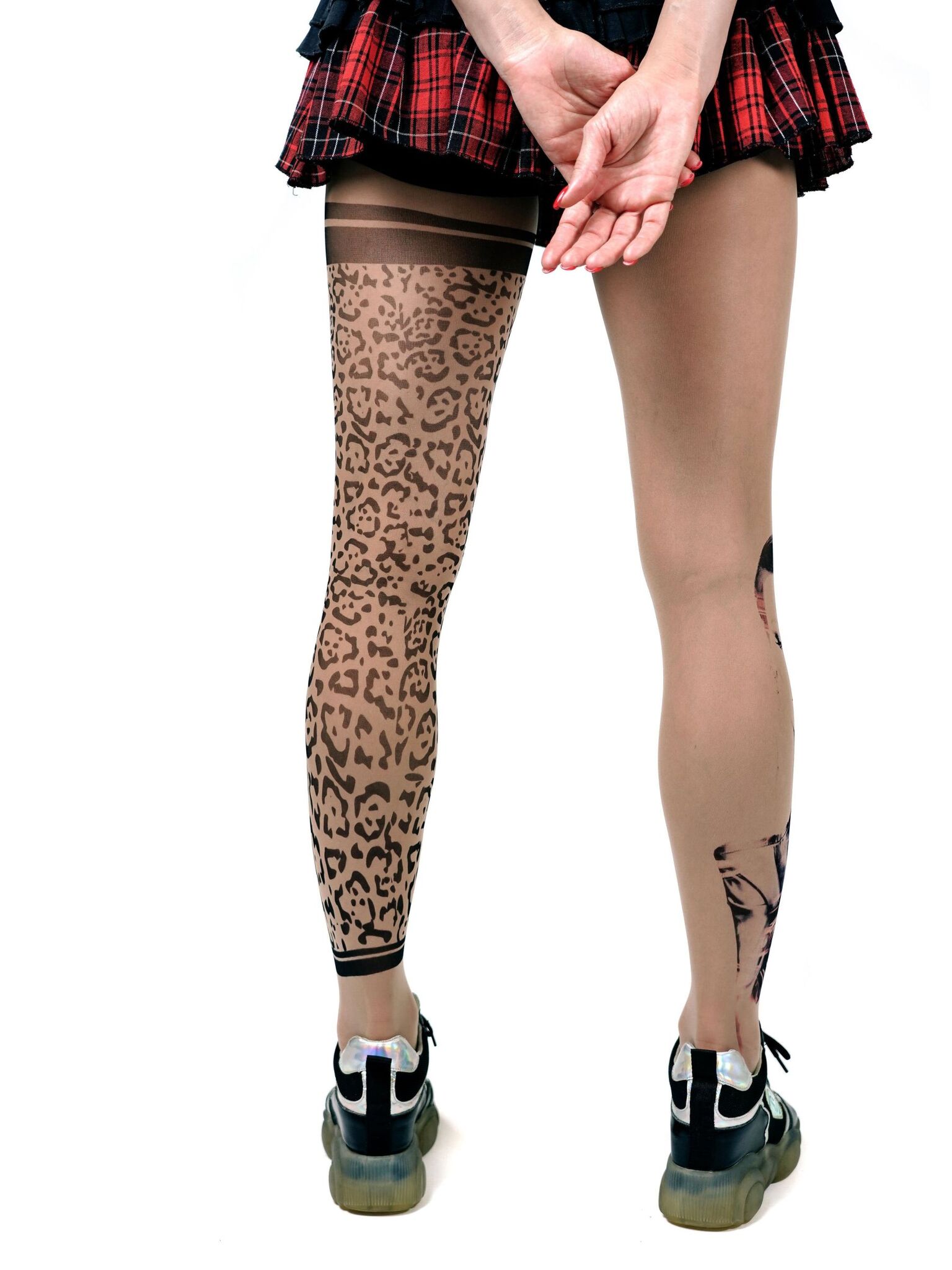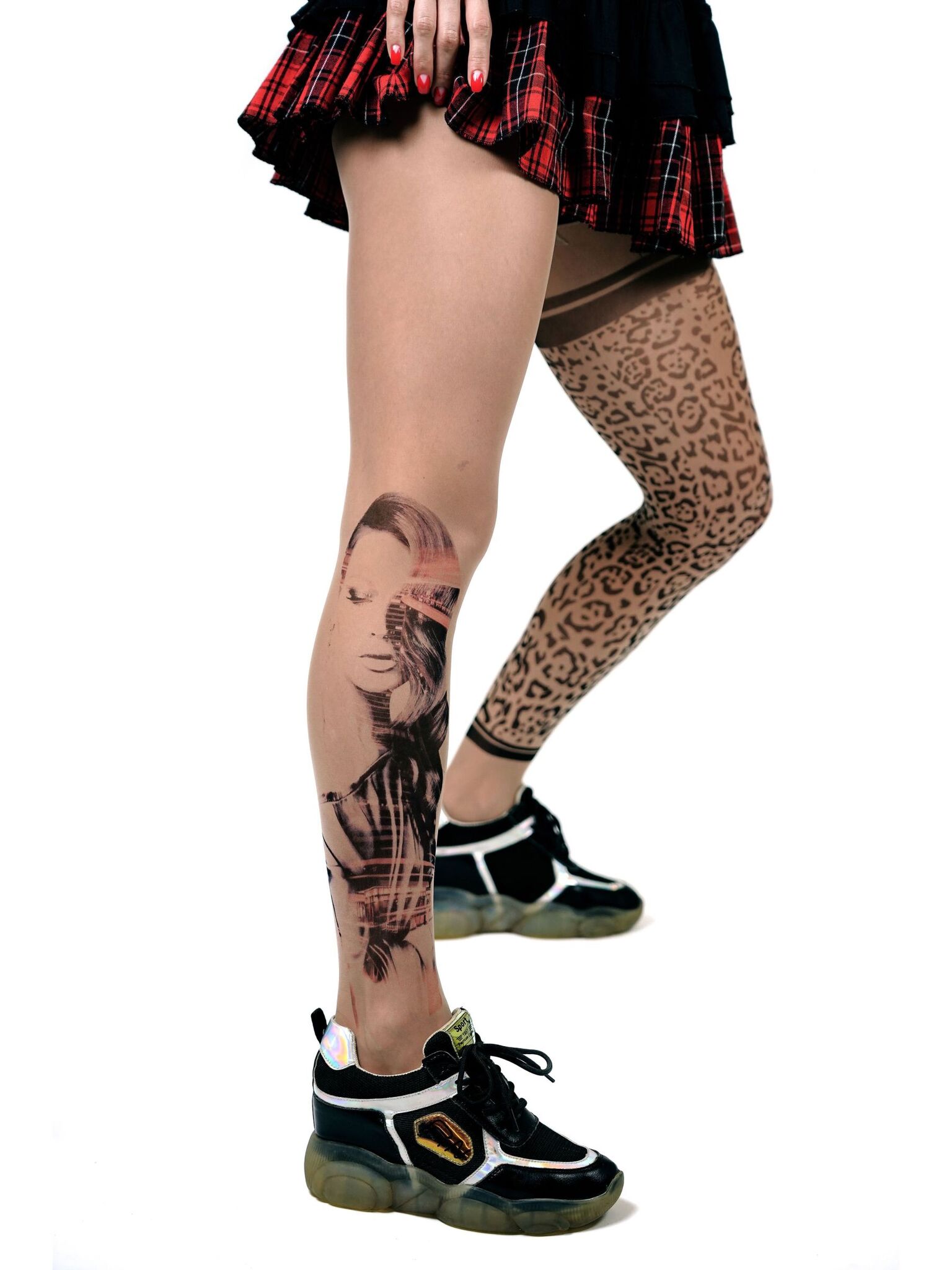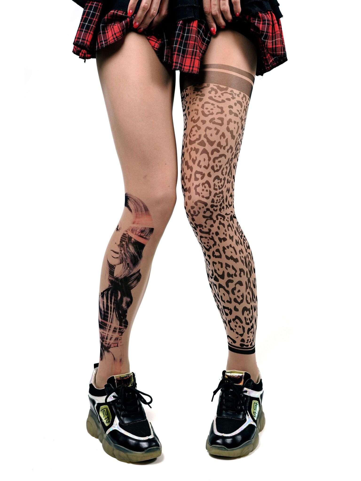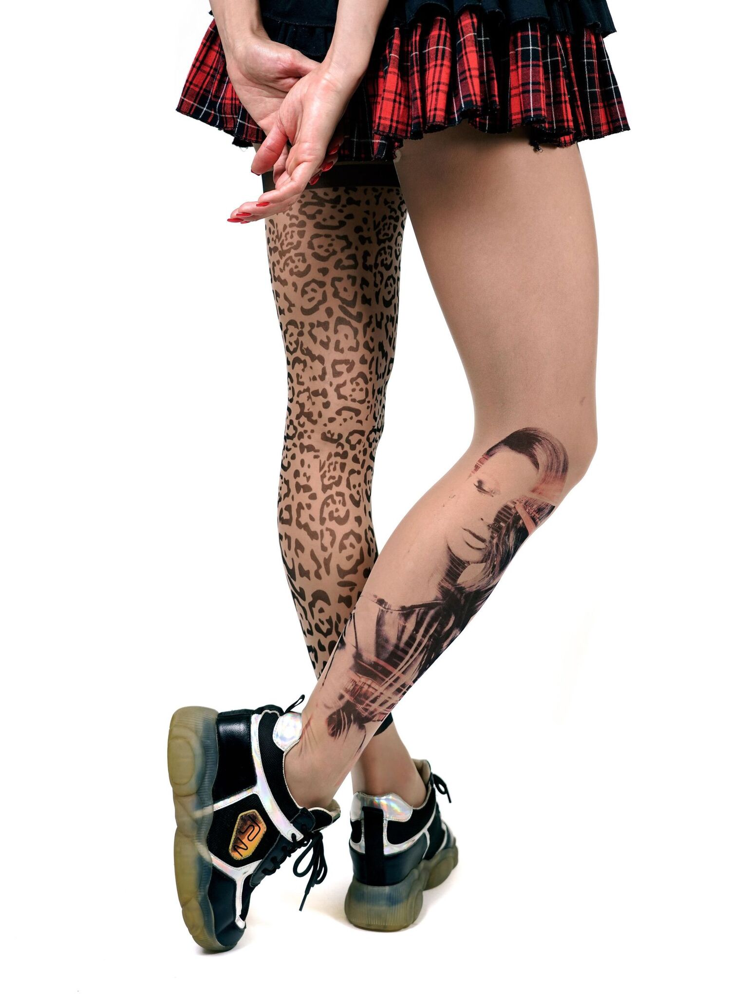 Поразите окружающих игрой контрастов: леопардовый принт на одной ноге и стильный рисунок девушки на другой. Эти колготки созданы для тех, кто ценит оригинальность и комфорт.