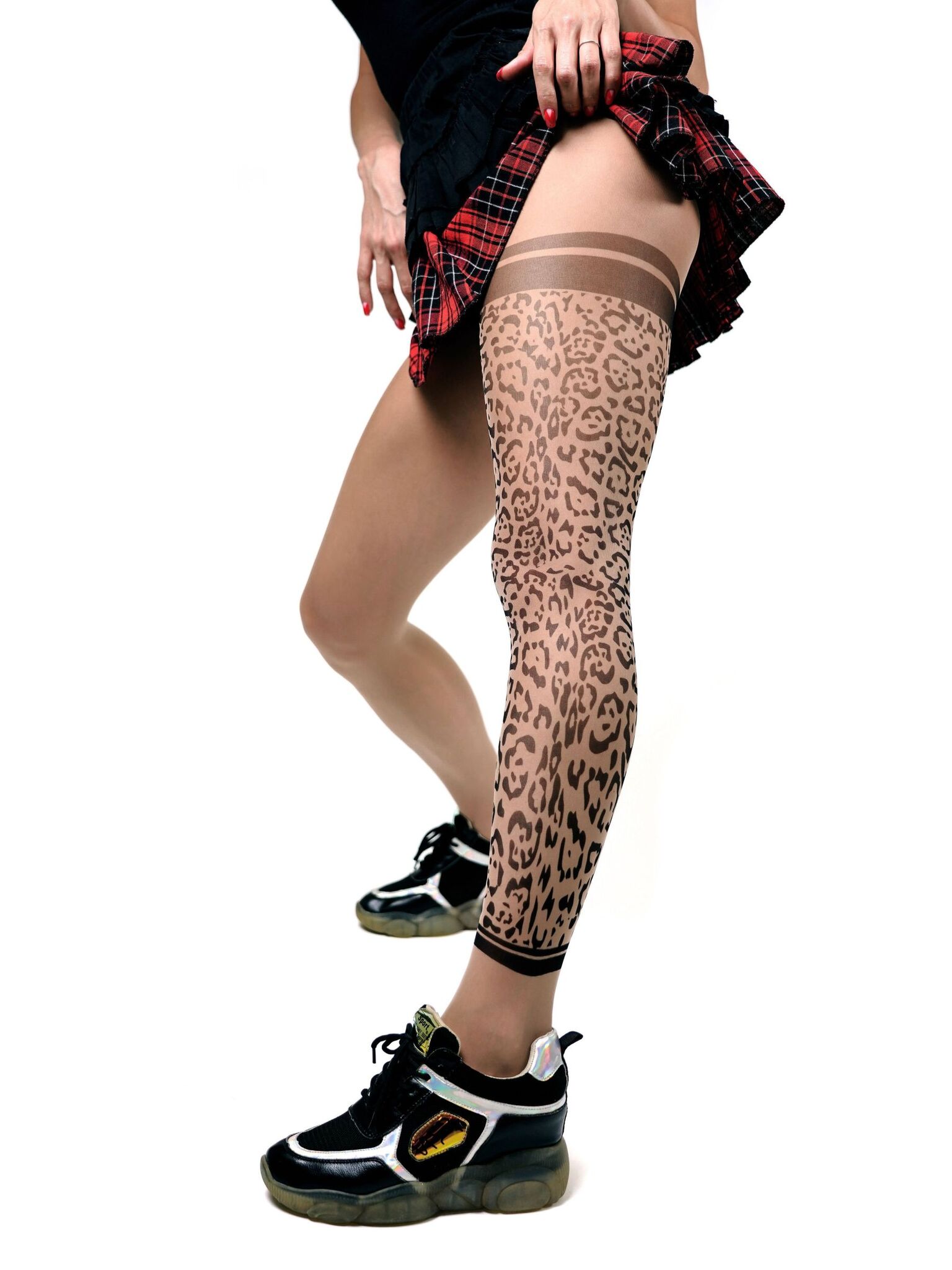 Колготки с леопардовым принтом и рисунком, плотность 40 ден, размер S-M-L, цвет бежевый