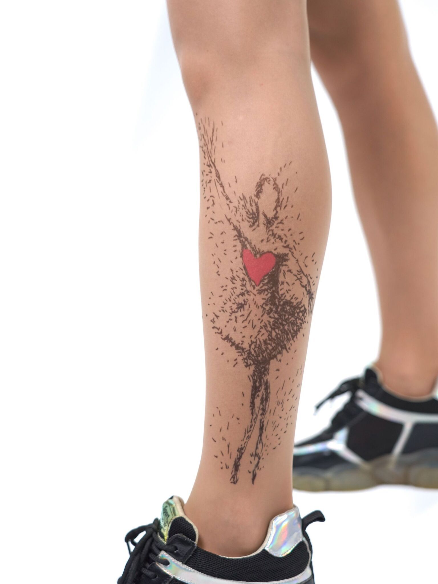 Эти колготки с уникальным принтом в виде балерины и большого сердца подчеркнут вашу индивидуальность и придадут особый шарм любому образу. Сочетание элегантности и игривости делает их идеальным выбором для тех, кто ценит стильные детали.