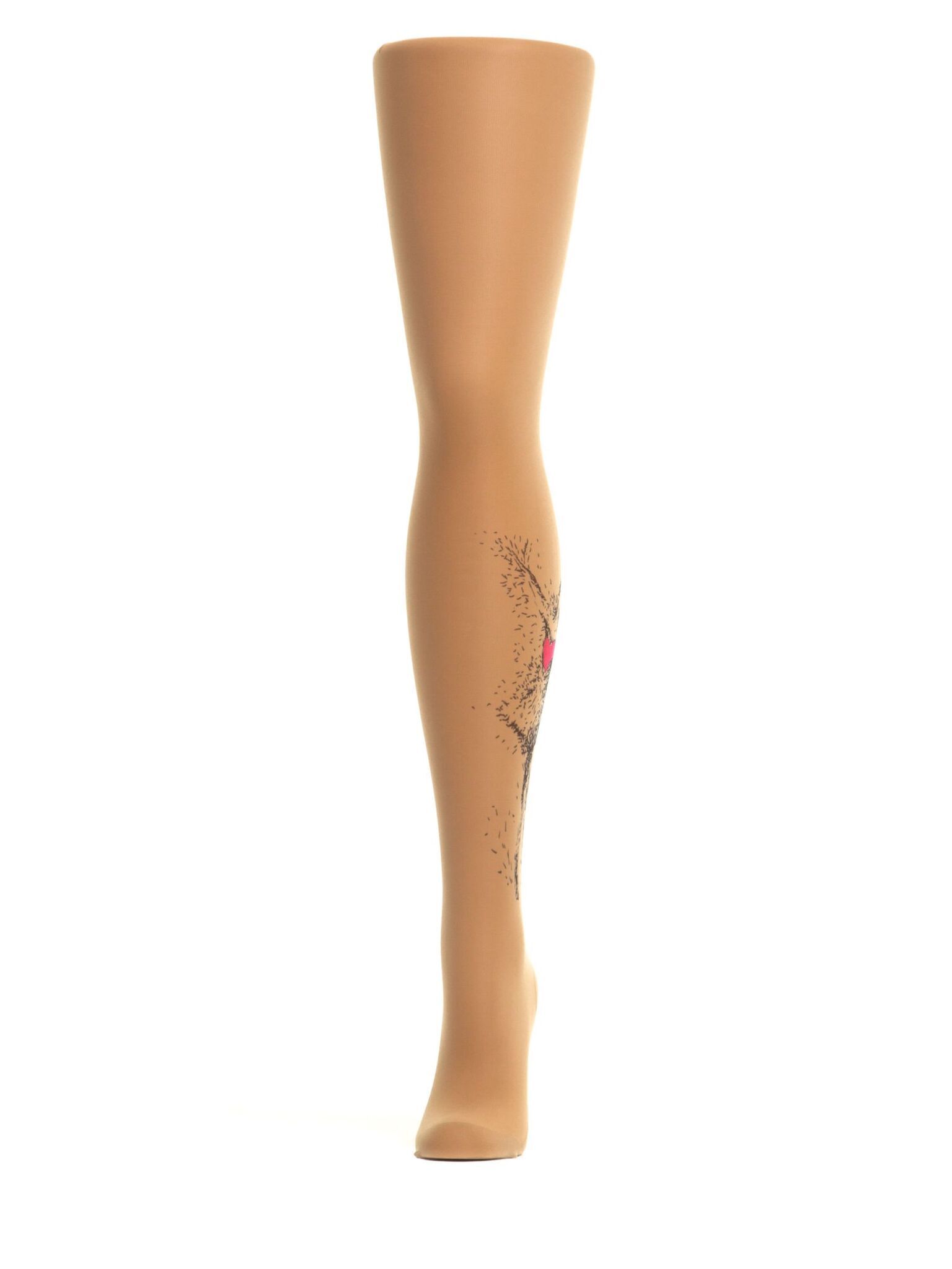 Колготки с принтом 'Балерина с сердцем', бежевые, S-M-L, плотность 40 ден