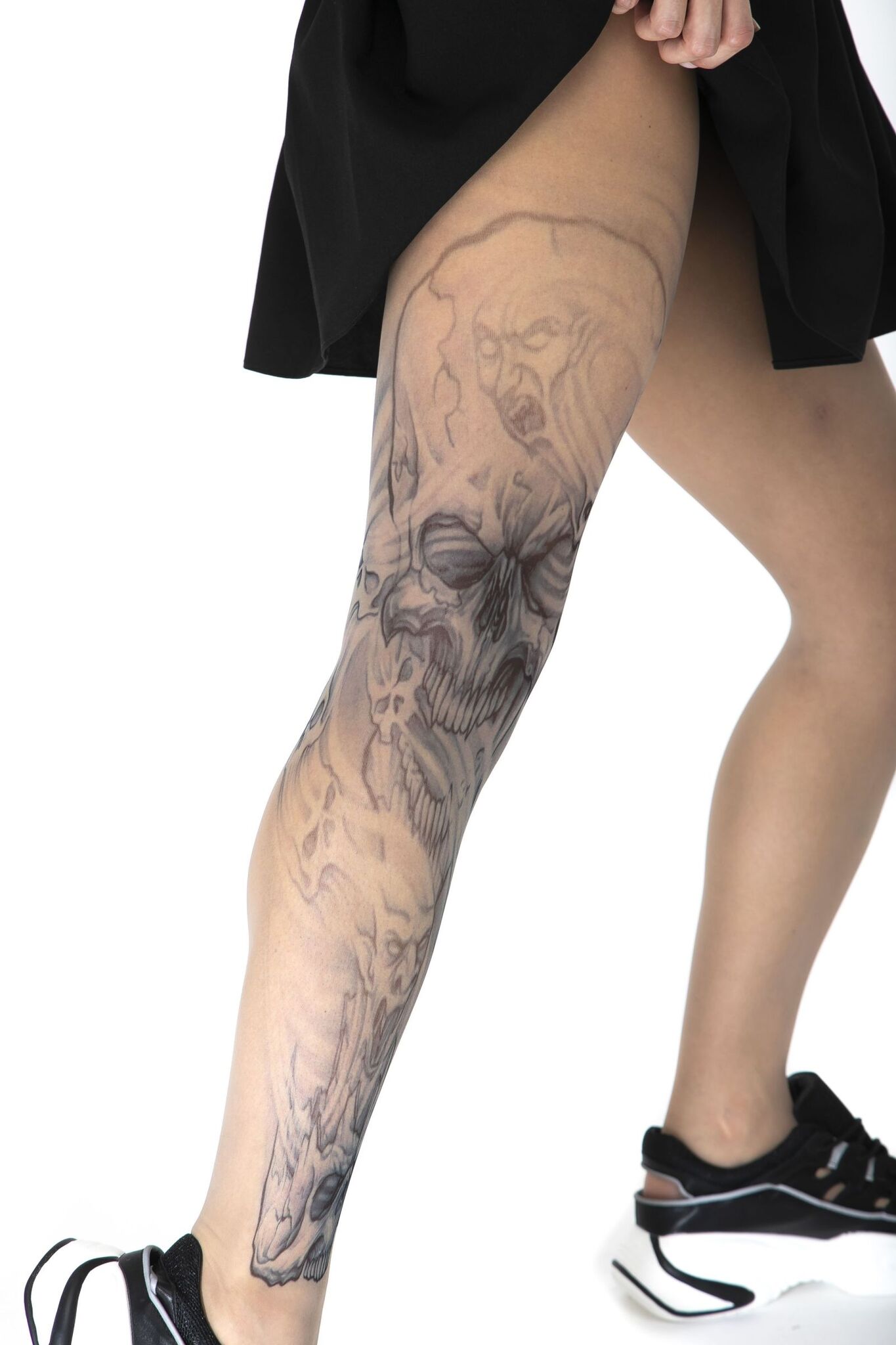 Колготки с принтом «черепа и духи», бежевые, 40 ден, размер S-M-L, износостойкие, машинная стирка