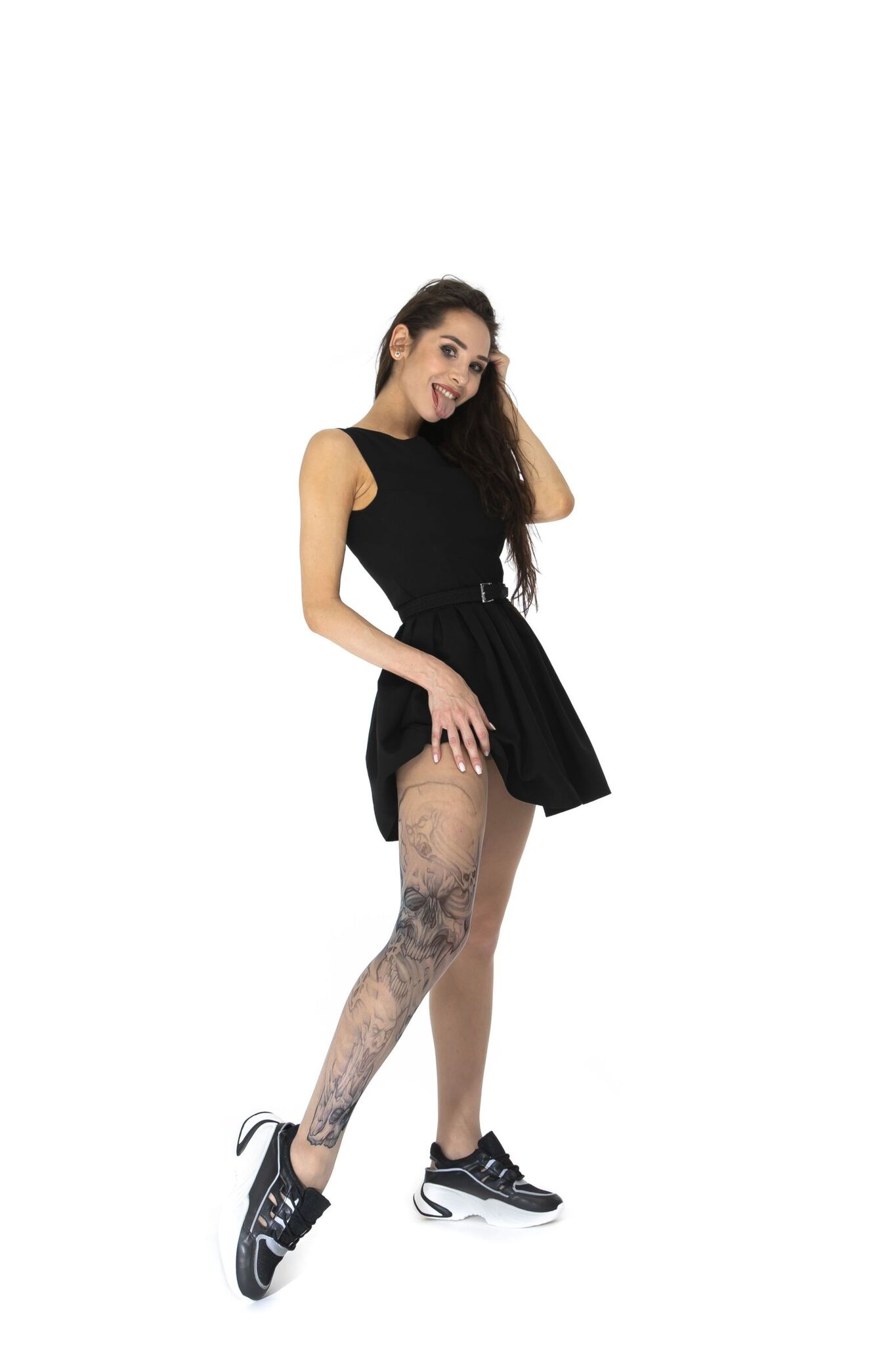 Плотность 40 den подходит для ежедневной носки в межсезонье. Состав из полиамида (88%) и эластана (12%) обеспечивает баланс между прочностью и эластичностью. Нейтральный бежевый оттенок служит идеальным фоном для контрастного принта.