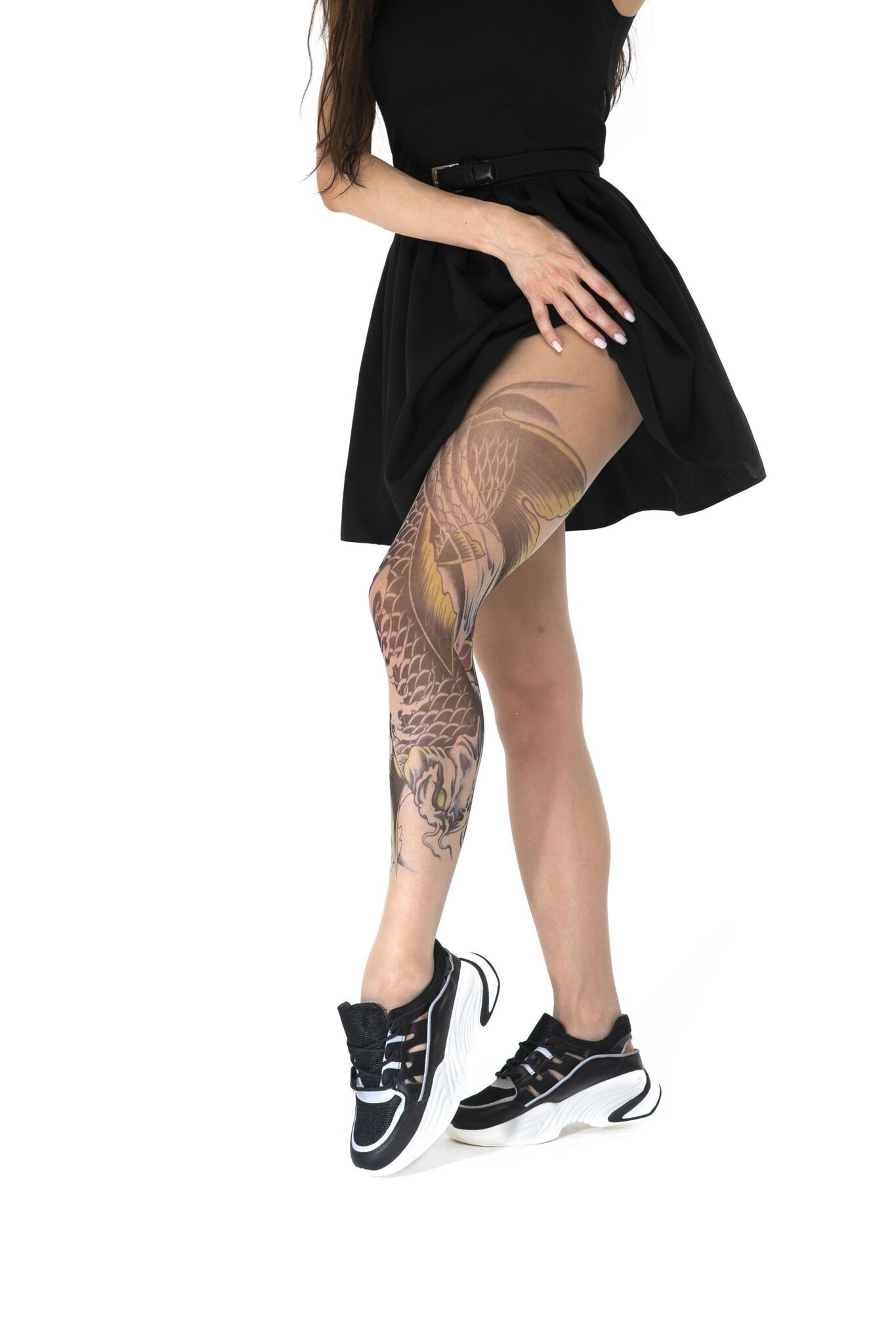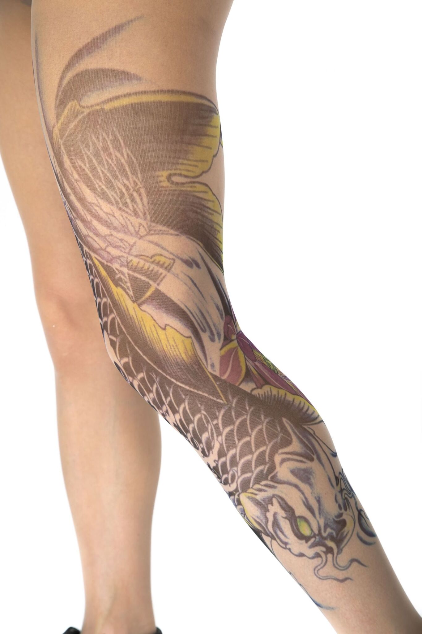 Создайте неповторимый стиль с колготками, украшенными изысканным принтом в виде черного карпа кои. Этот символ удачи и процветания в японской культуре добавит особый шарм вашему образу.