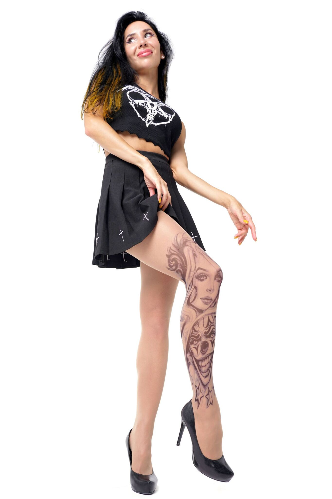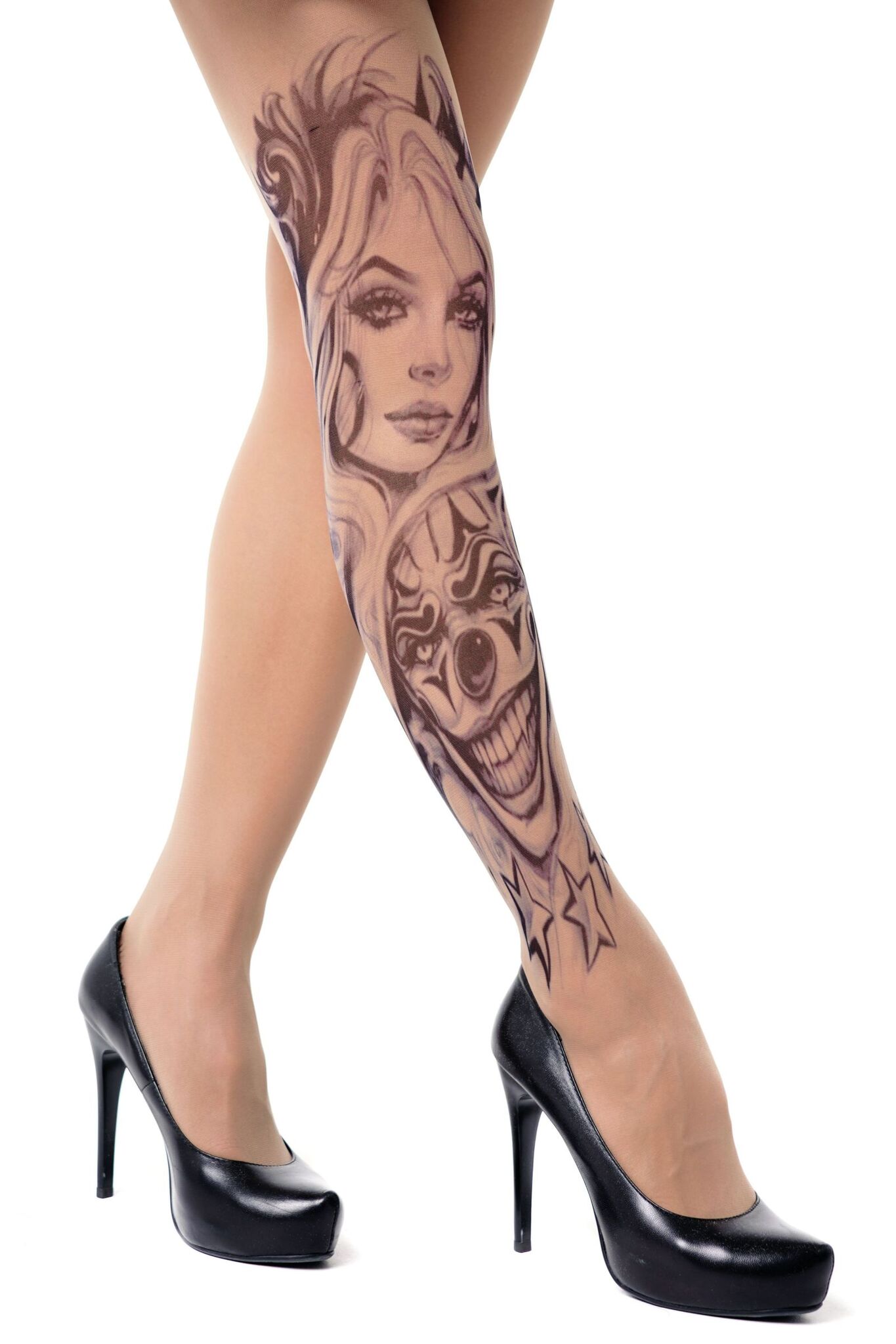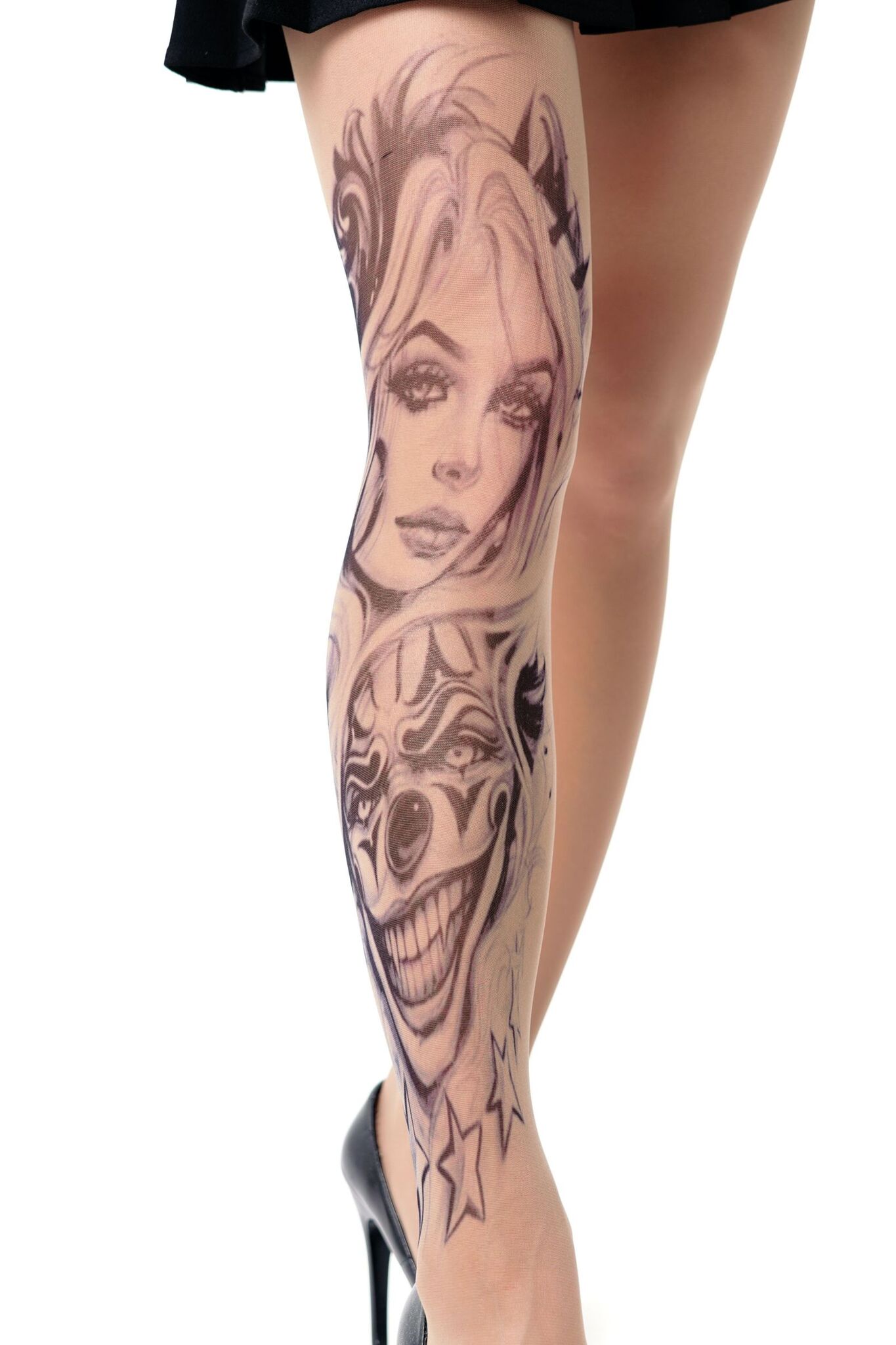 Эти колготки с принтом девушки и злого клоуна — идеальный выбор для тех, кто хочет выделиться и добавить изюминку в свой образ. Они не только стильные, но и практичные, так как принт не стирается и не выгорает на солнце, что гарантирует долговечность и сохранение яркости цветов. Выбирая эти колготки, вы получаете не только модный аксессуар, но и уверенность в своем стиле.