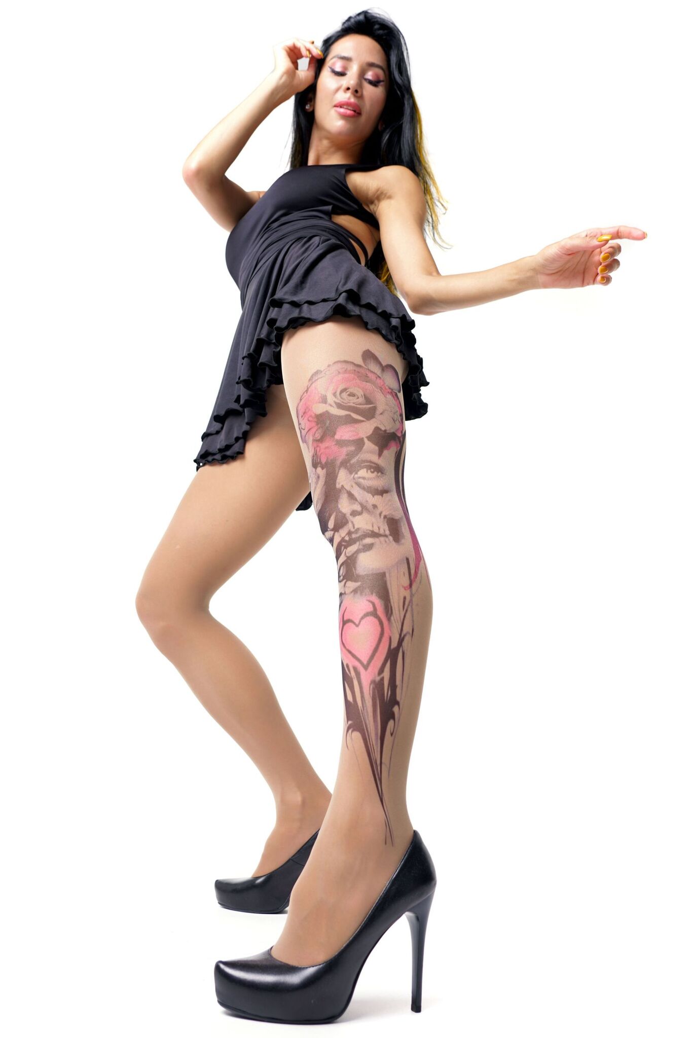 Поразите всех стильным акцентом в вашем образе. Эти колготки с эффектом татуировки добавят загадочности и особого шарма вашему внешнему виду.