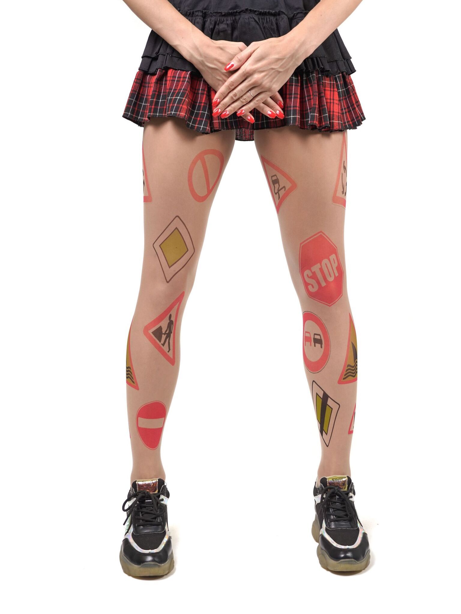 Погрузитесь в мир моды и самовыражения с нашими колготками с принтом дорожных знаков. Эти колготки не только привлекают внимание, но и обеспечивают комфорт и долговечность. Принт не стирается и не выгорает со временем, что делает их идеальным выбором для повседневной носки.