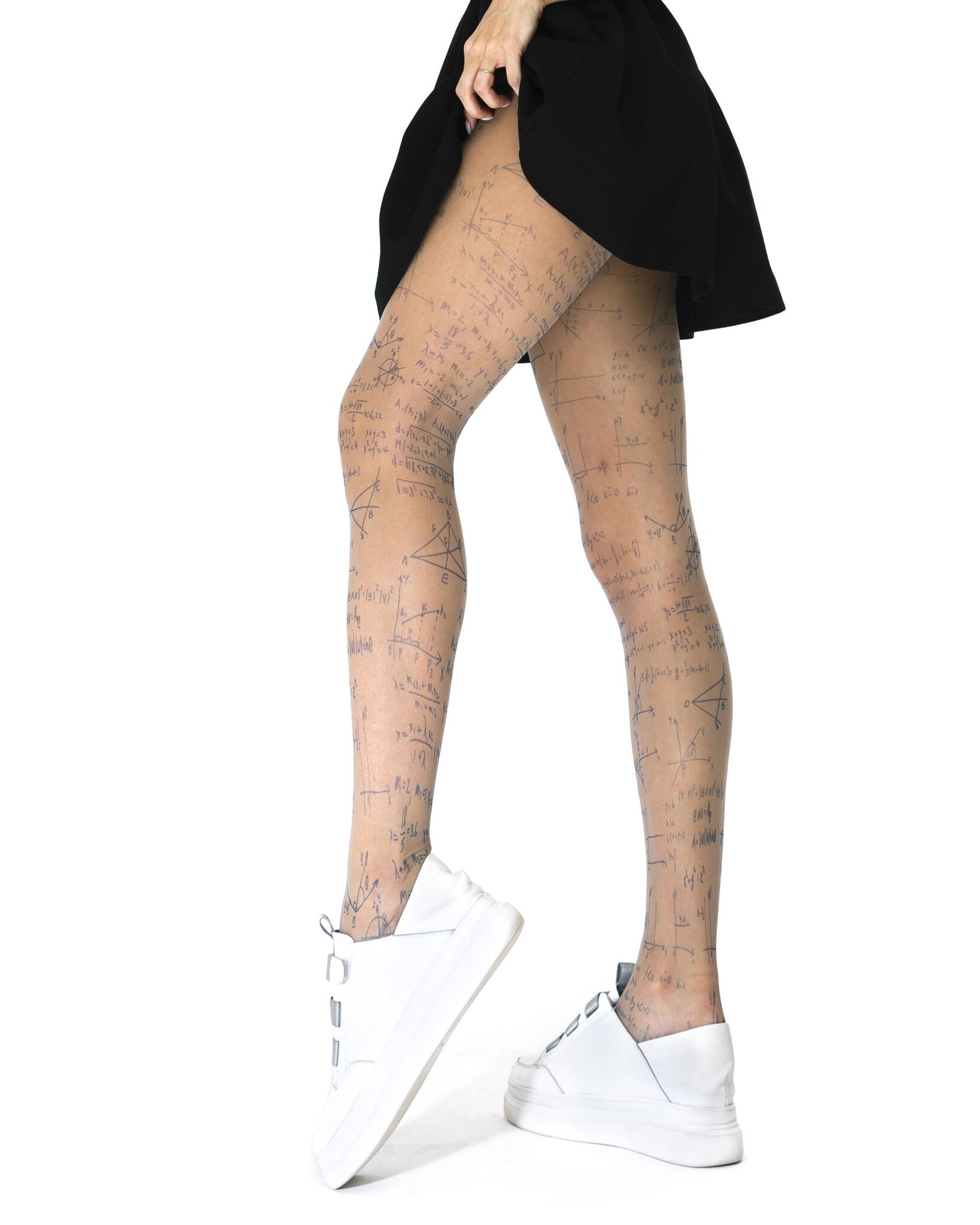 Погрузитесь в мир математики и стиля с нашими колготками с принтом формул. Эти колготки не только добавят оригинальности вашему образу, но и обеспечат комфорт на протяжении всего дня. Благодаря матовому эффекту и высококачественному материалу, они идеально облегают ноги, подчеркивая их красоту.