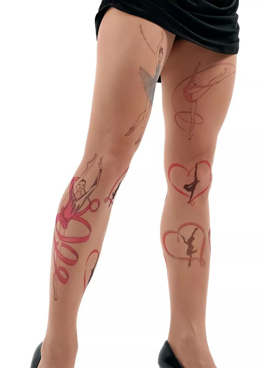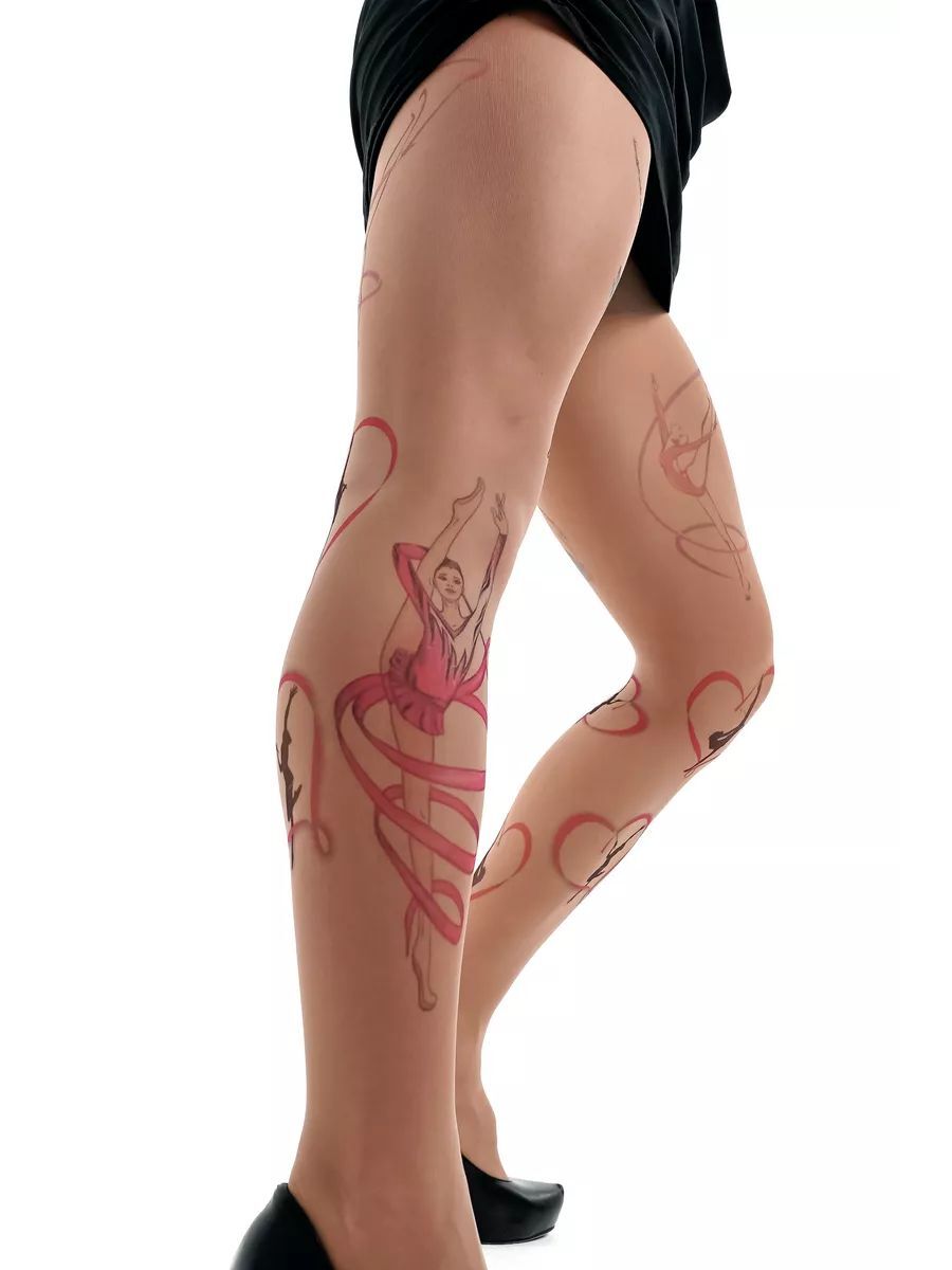 Колготки с износостойким принтом 'гимнастки', размер S-M-L, бежевые, 40 ден, полиамид/эластан