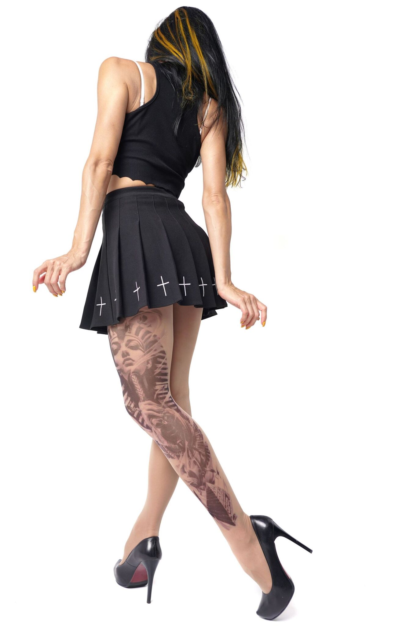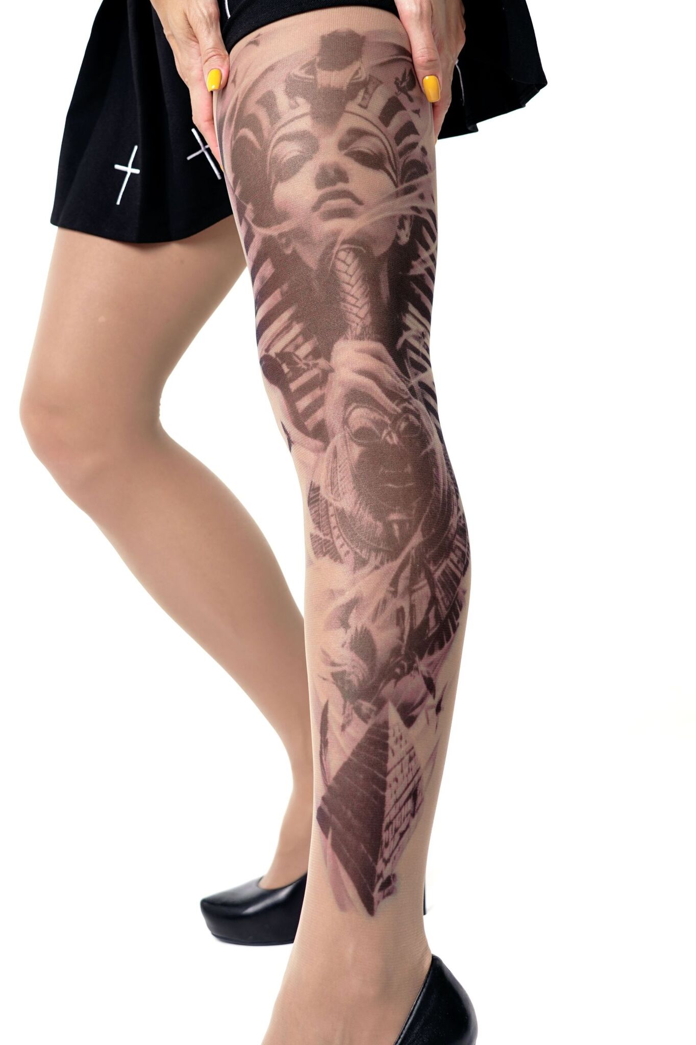 Погрузитесь в мир стиля и комфорта с нашими колготками с принтом хатшепсут. Эти колготки не только подчеркнут вашу индивидуальность, но и добавят изюминку в любой образ. Благодаря уникальному дизайну, они создают эффект татуировки, что делает их идеальным выбором для смелых и стильных женщин.