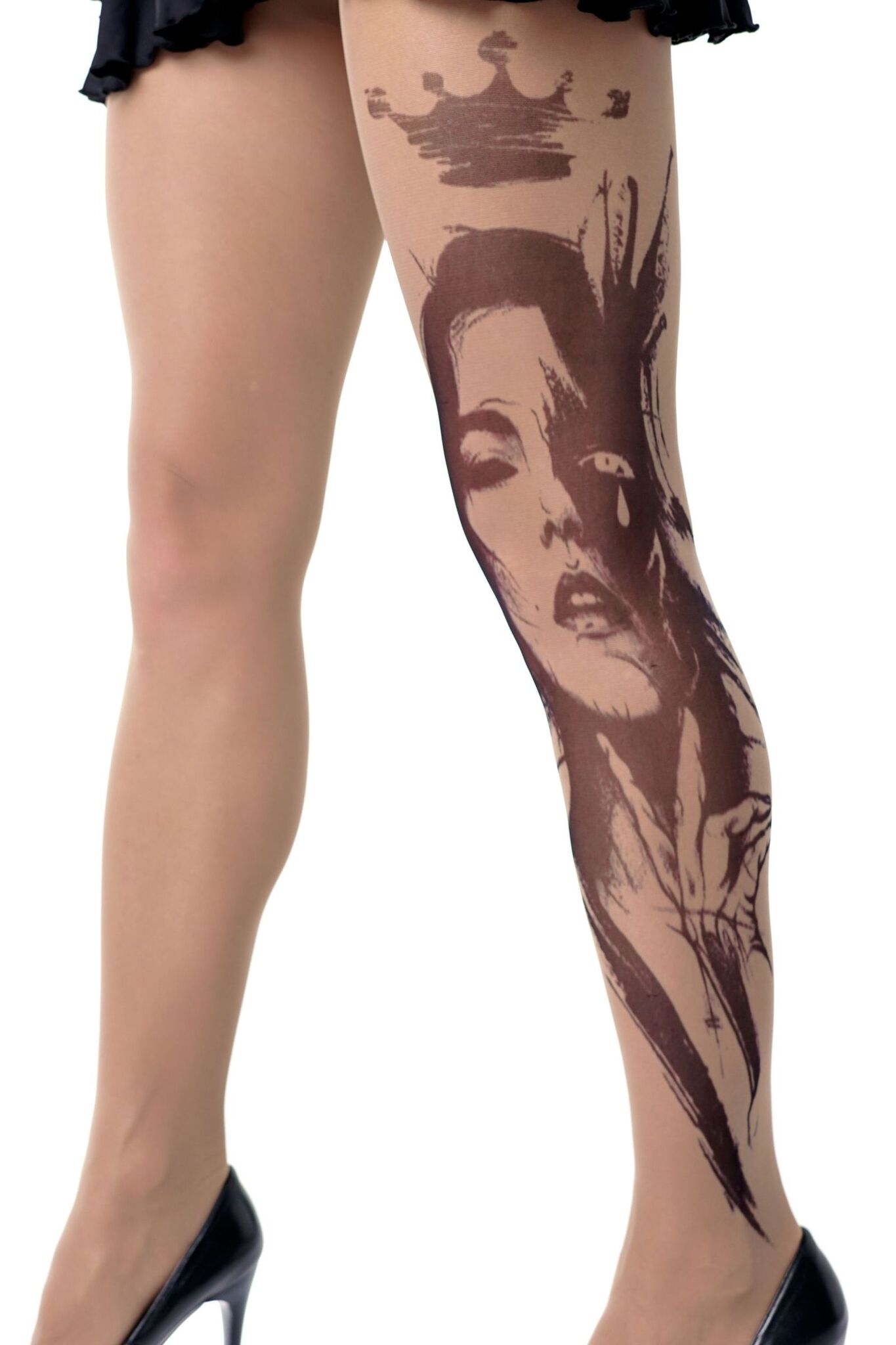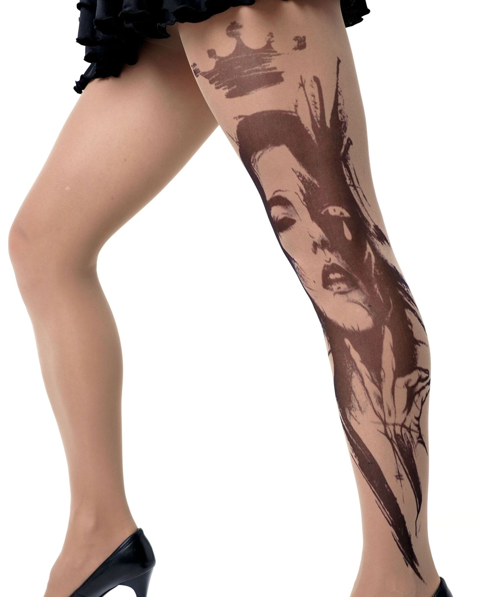 Эти колготки с эффектом татуировки станут вашим секретным оружием в создании неповторимого образа. Принт в виде королевы добавит роскоши и элегантности любому наряду.