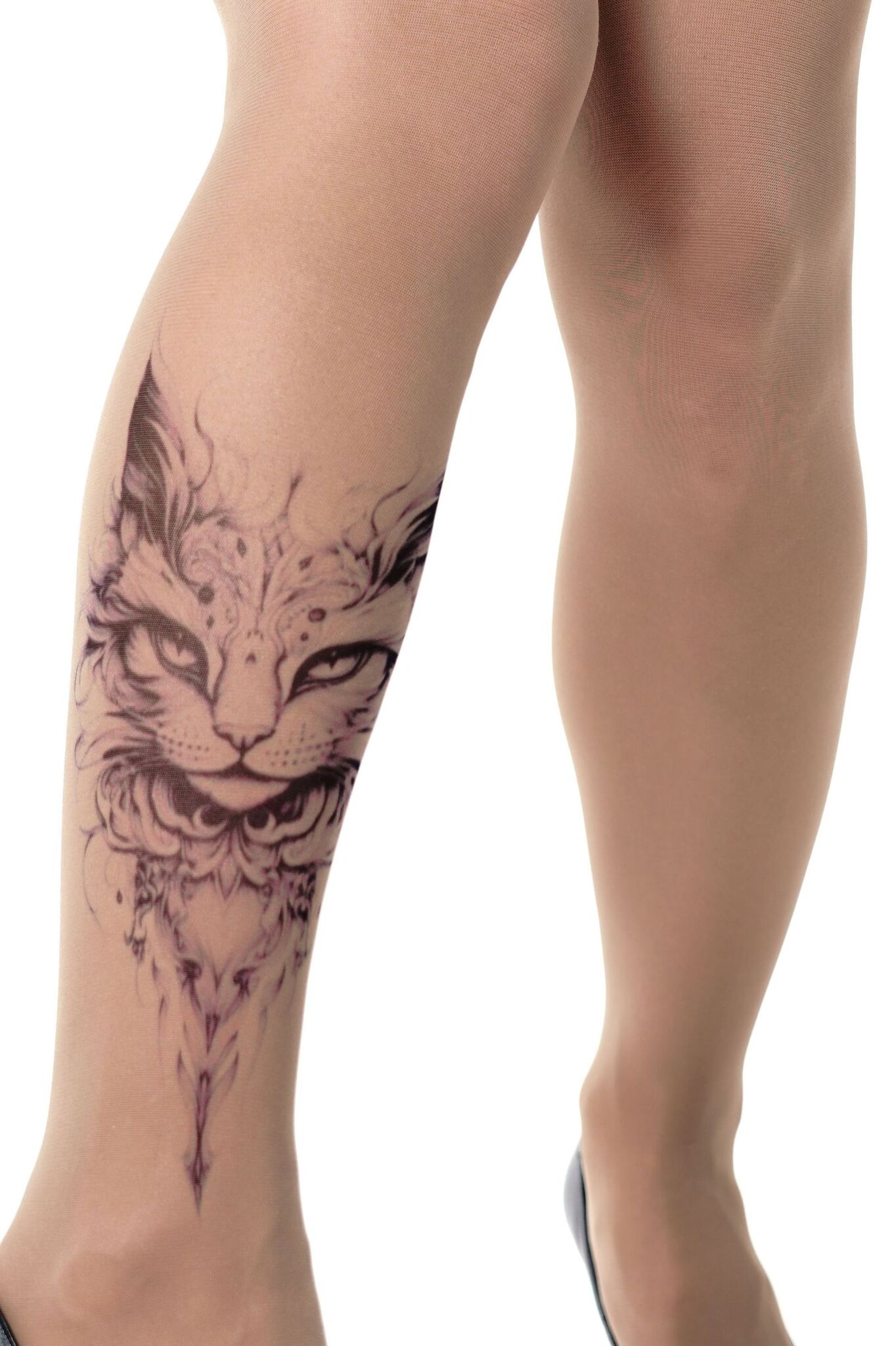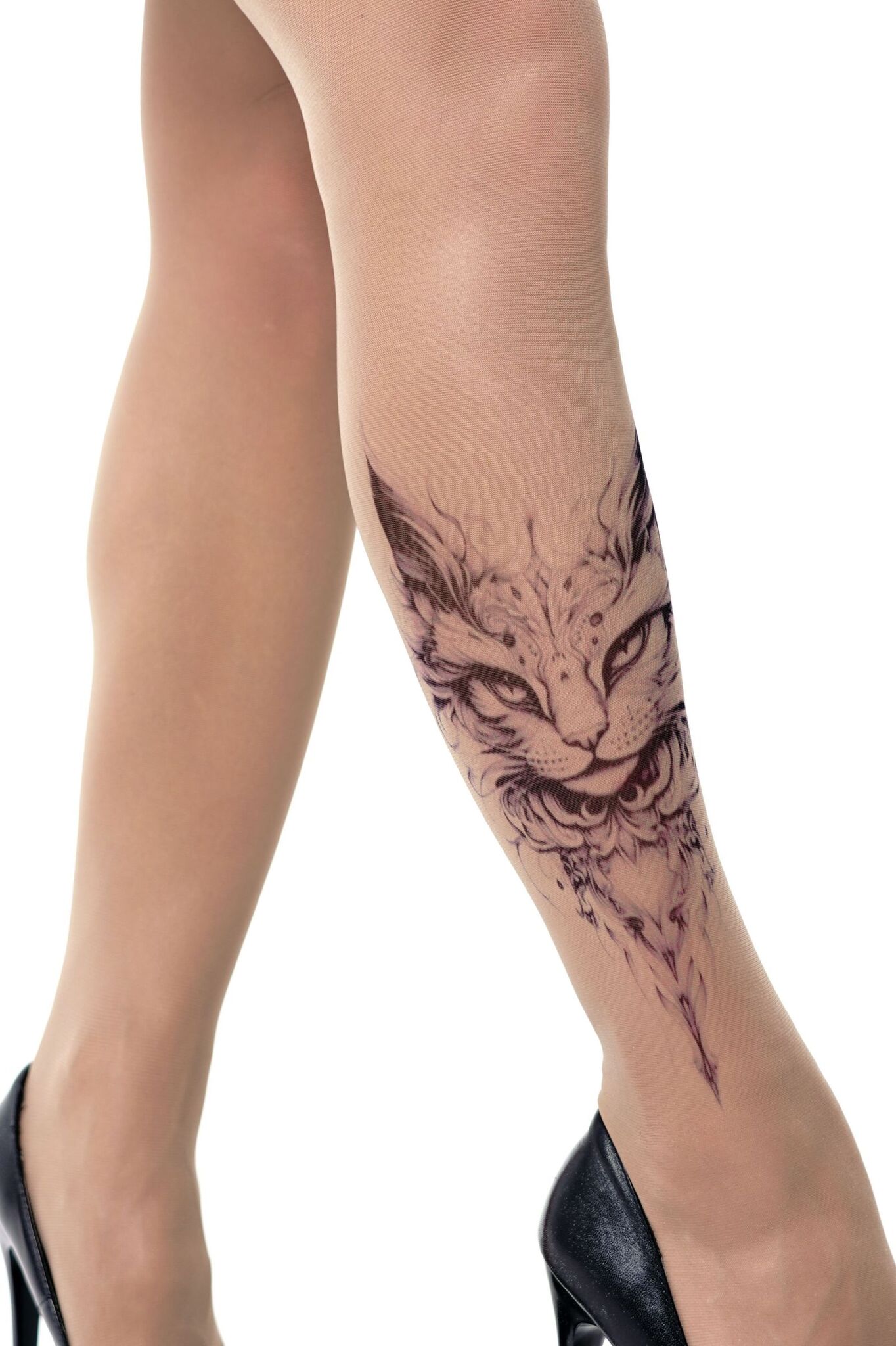 Погрузитесь в мир моды и комфорта с нашими колготками с эффектом тату. Эти колготки не только добавят изюминку в ваш образ, но и обеспечат максимальный комфорт в носке. Принт в виде кошачьей мордочки выполнен с высокой детализацией и не стирается, что гарантирует долговечность и яркость цвета. Вы можете смело носить их в любое время года, ведь они идеально подходят как для повседневной носки, так и для особых случаев.