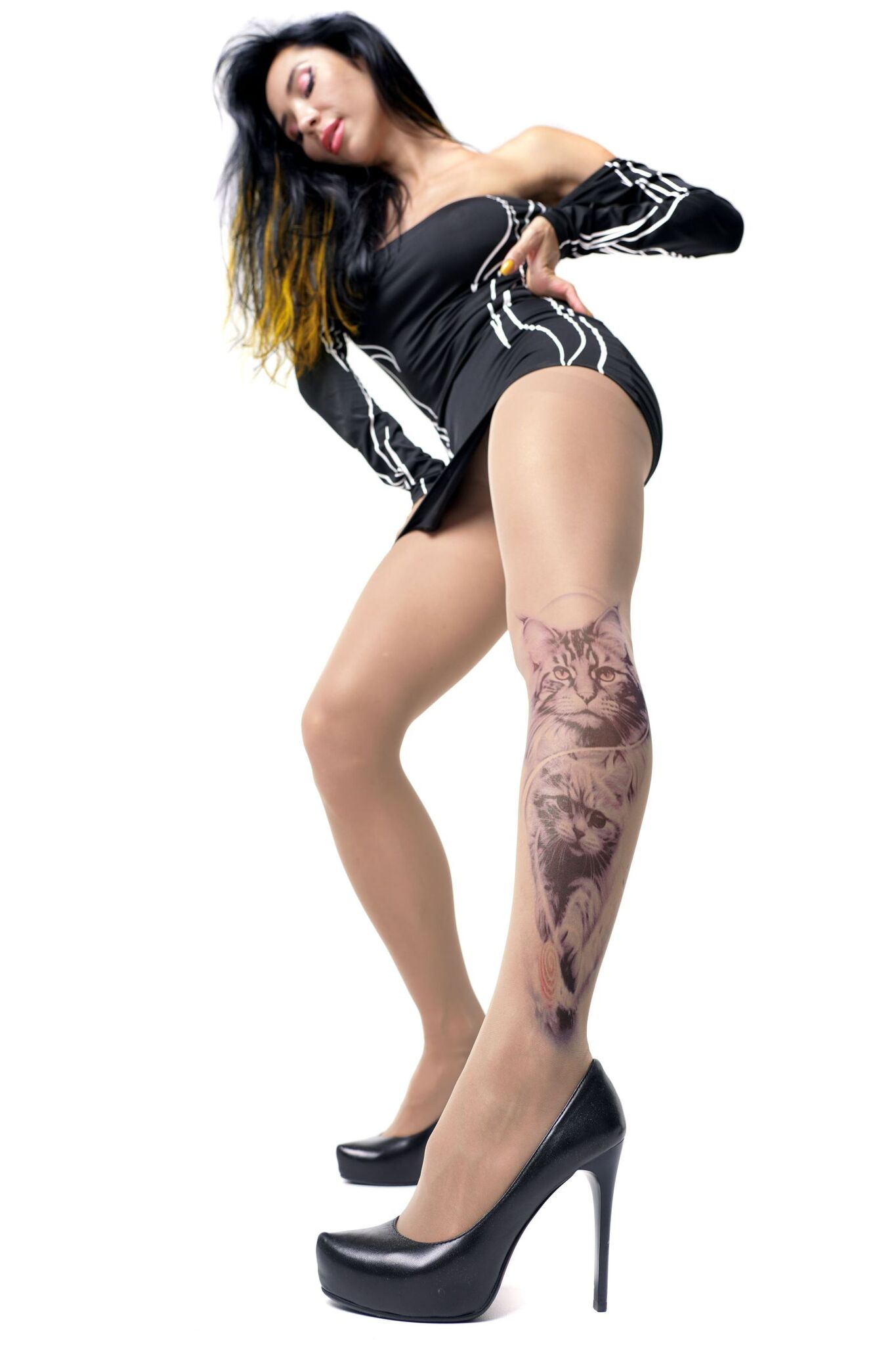 Создавайте эффектные луки с колготками, чей рисунок сохраняет чёткость даже после множества стирок. Уникальный принт с кошками подчеркнёт вашу индивидуальность, а телесный оттенок останется незаметным под одеждой.