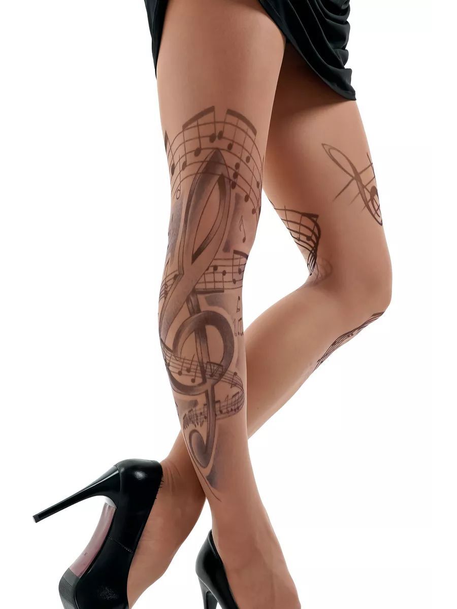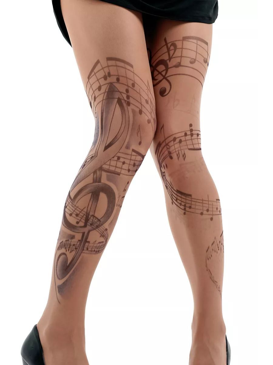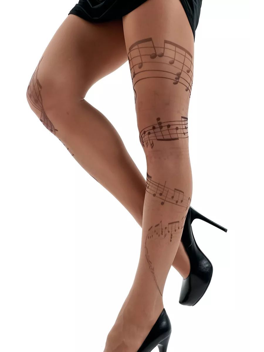 Колготки с принтом нот, бежевые, размер S-M-L, плотность 40 ден