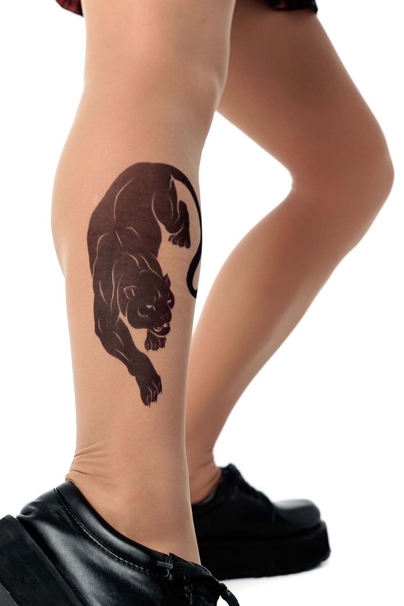 Колготки с эффектом татуировки в виде пантеры подчеркнут вашу индивидуальность и добавят игривости в повседневный образ. Прочный принт остается стойким даже после многократных стирок.